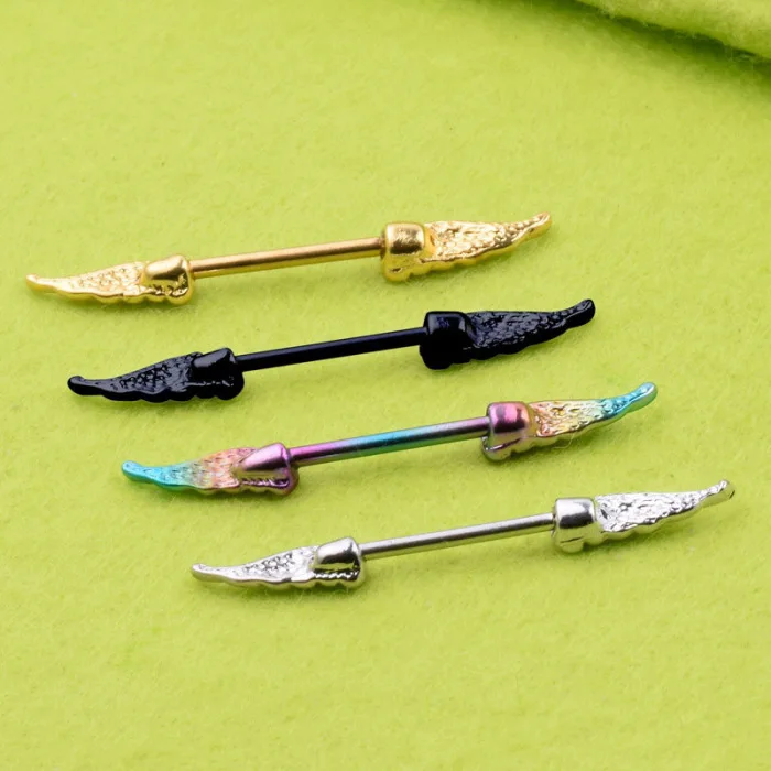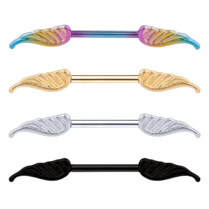 Модное женское кольцо для сосков, двойное крыло, перо, медицинская сталь, прямой стержень, соски, щит, кольца, пирсинг, ювелирное изделие, подарок SER88