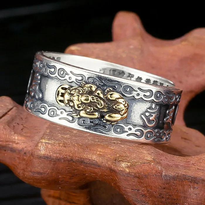 Новинка, мужское кольцо Pixiu, талисманы, фэн-шуй, амулет, богатство, удача, открытое регулируемое кольцо, буддийские ювелирные изделия, FIF66