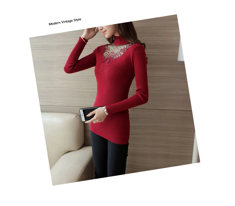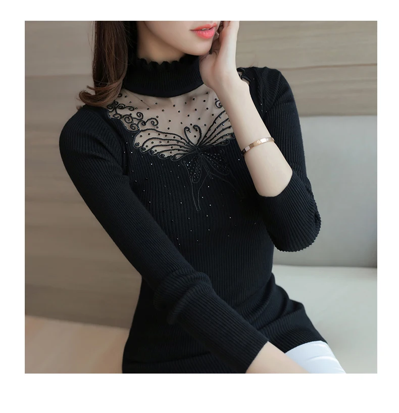2020 весенний сексуальный кружевной вязаный свитер, Женский Одноцветный плиссированный облегающий эластичный свитер с высоким воротом, женский свитер, пуловеры JR61 <