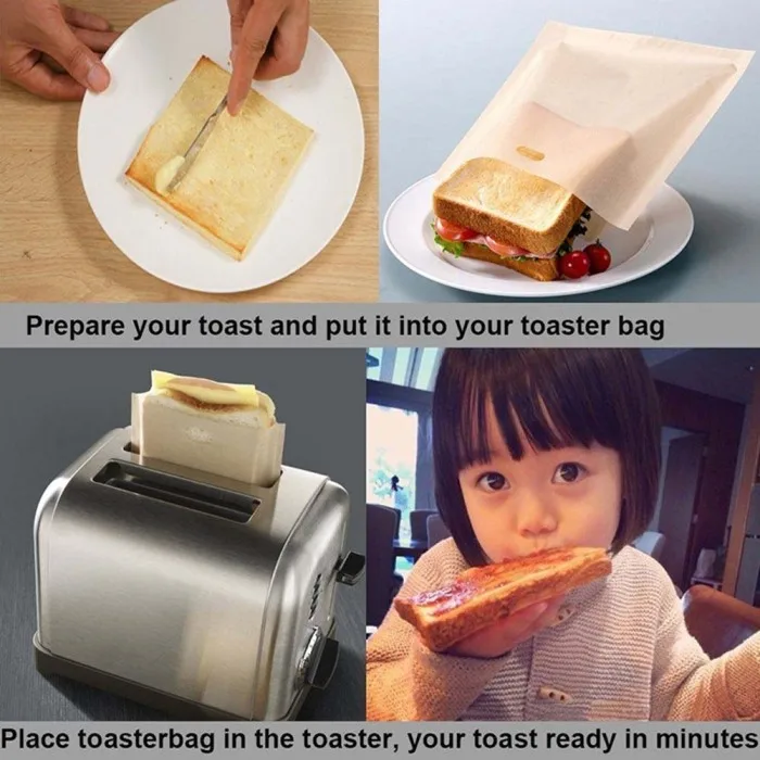 Use the Sandwich Toaster Toast Bags to cook grilled cheese sandwiches quickly and efficiently in your regular toaster. With no mess and no crumbs, your device will stay clean and the sandwich will retain its full taste. The toast bags can be used to reheat pizza, chicken nuggets, chips and more.
