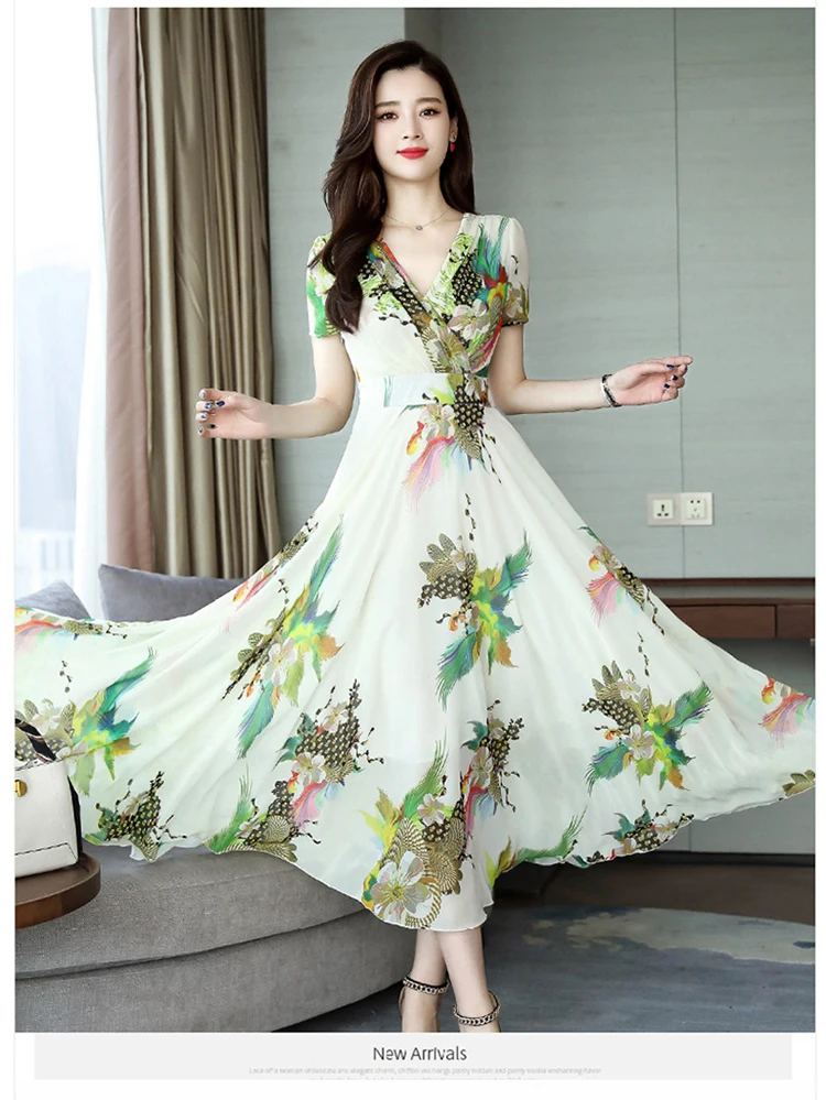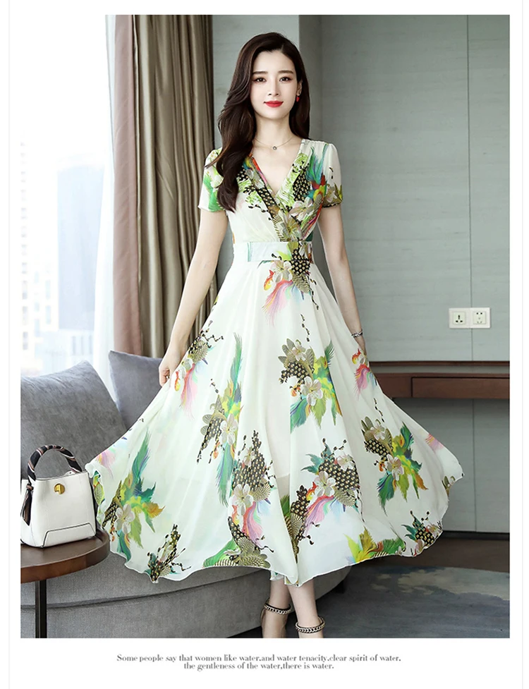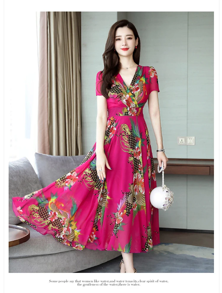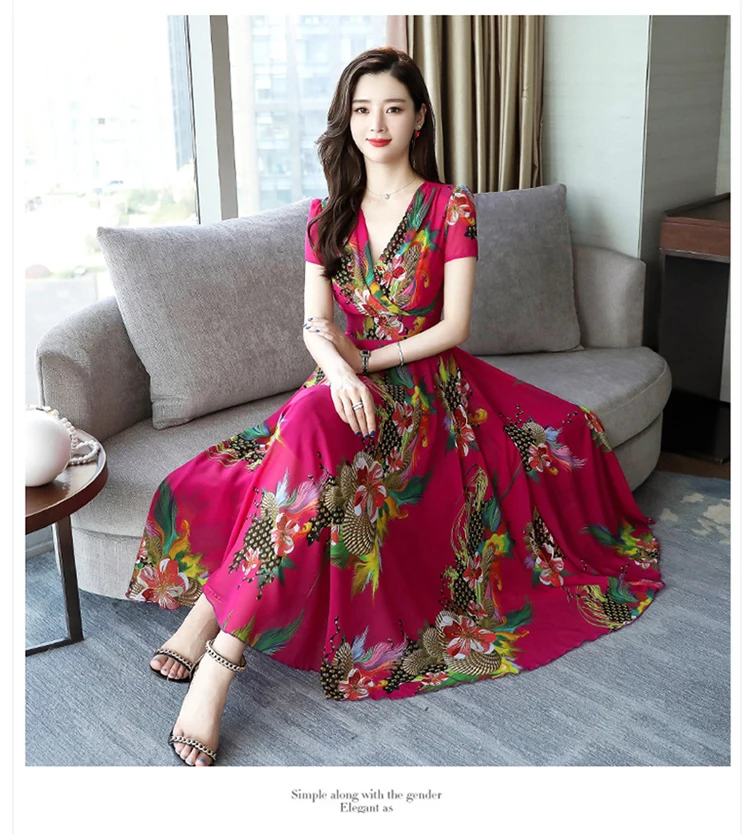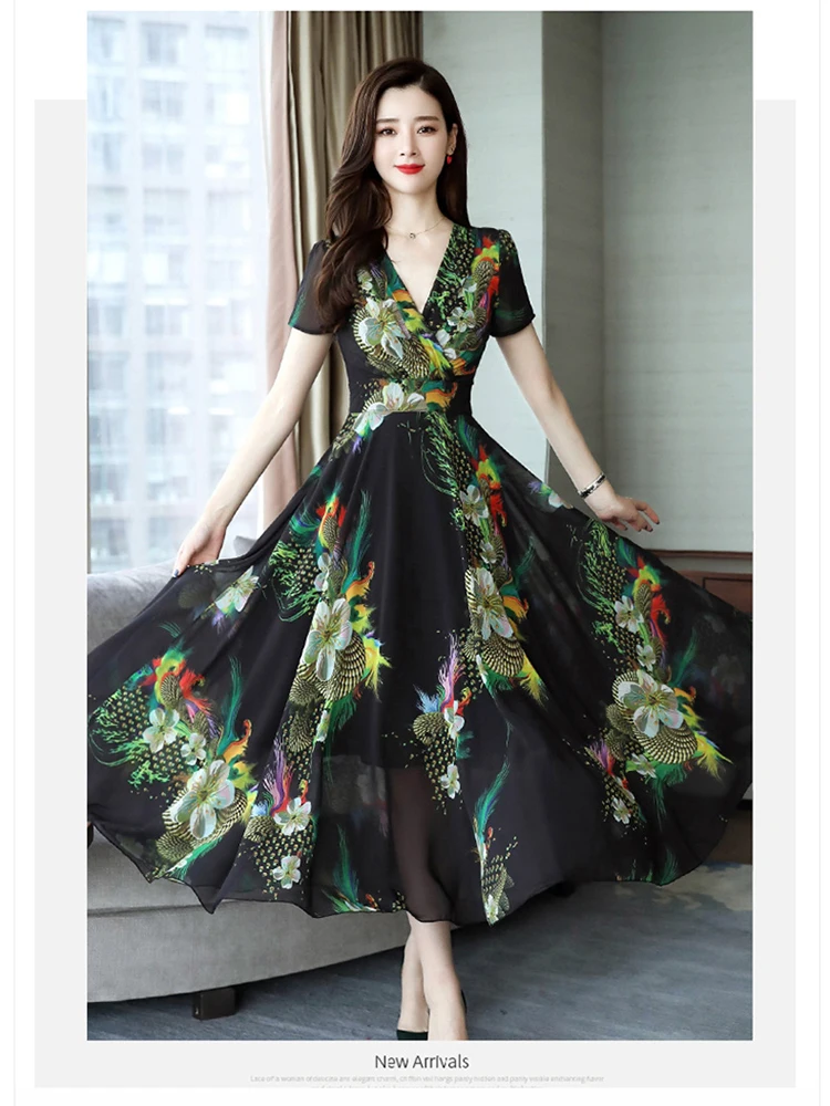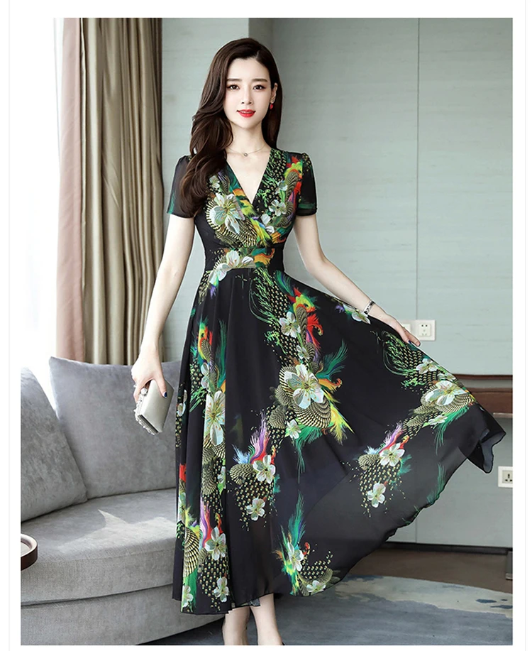 Хорошее качество, Элегантное Длинное Платье с v-образным вырезом 2020, женское летнее платье, винтажное шифоновое платье с цветочным принтом размера плюс, женская одежда AE511
