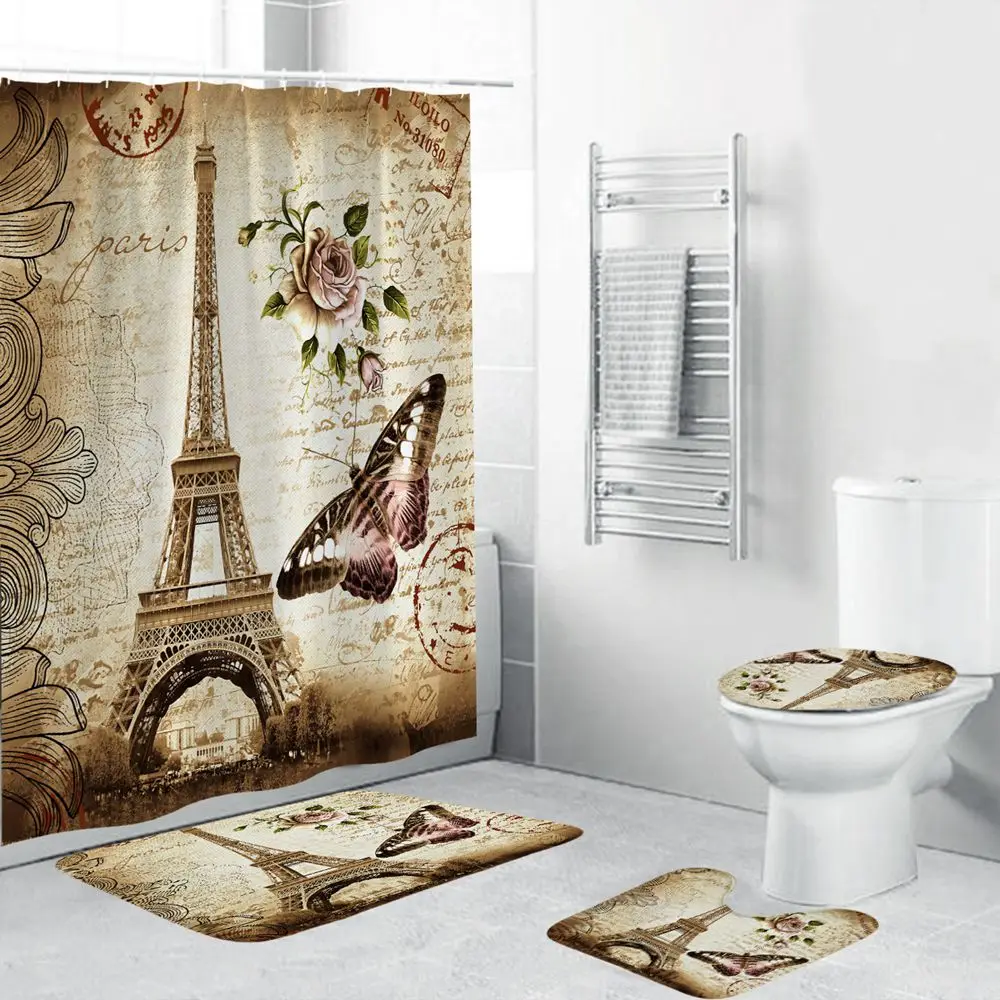 Dafield наборы занавесок для душа С нескользящими коврики для туалета крышка для ванной коврик цветочный душ занавеска с крючками Водонепроницаемая занавеска для ванной