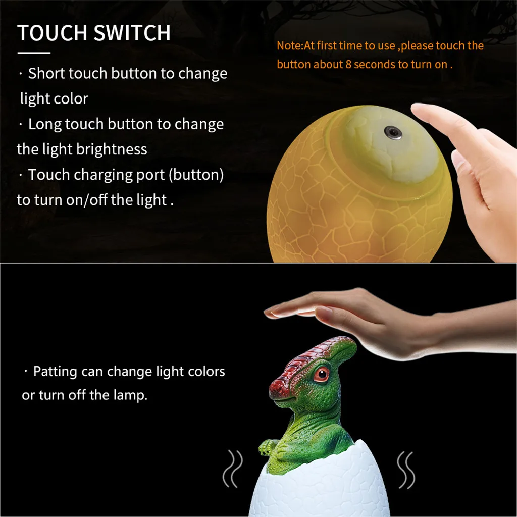 С реалистичной головой динозавра и яйцом динозавра, ваш ребенок будет находить эту игрушку потрясающей. Лампа динозавра поможет вашим детям преодолевать Боязнь Темноты и искры.