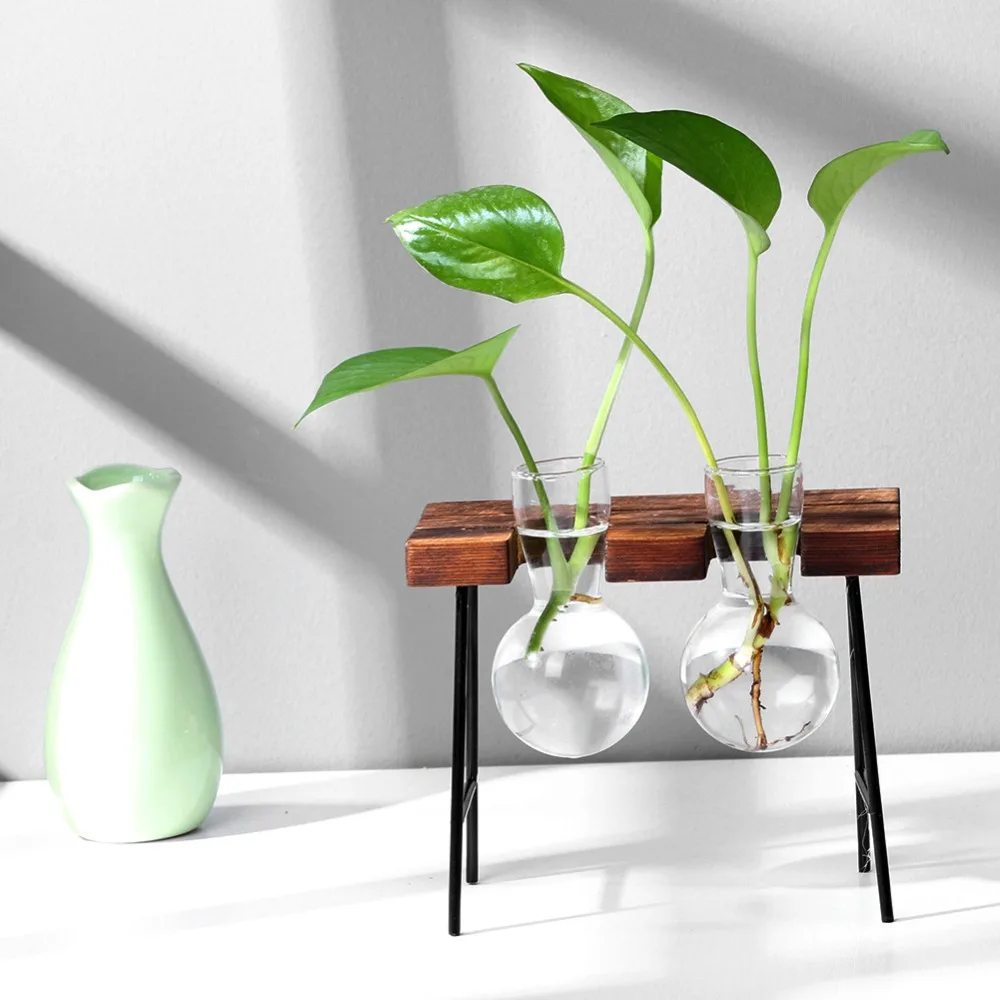 Стеклянная ваза настольная Гидропоника завод Бонсай цветочный горшок с деревянным лотком орнамент домашний офисный, Свадебный декорОсобенности:Стильный и красивый, офисное украшение для дома.