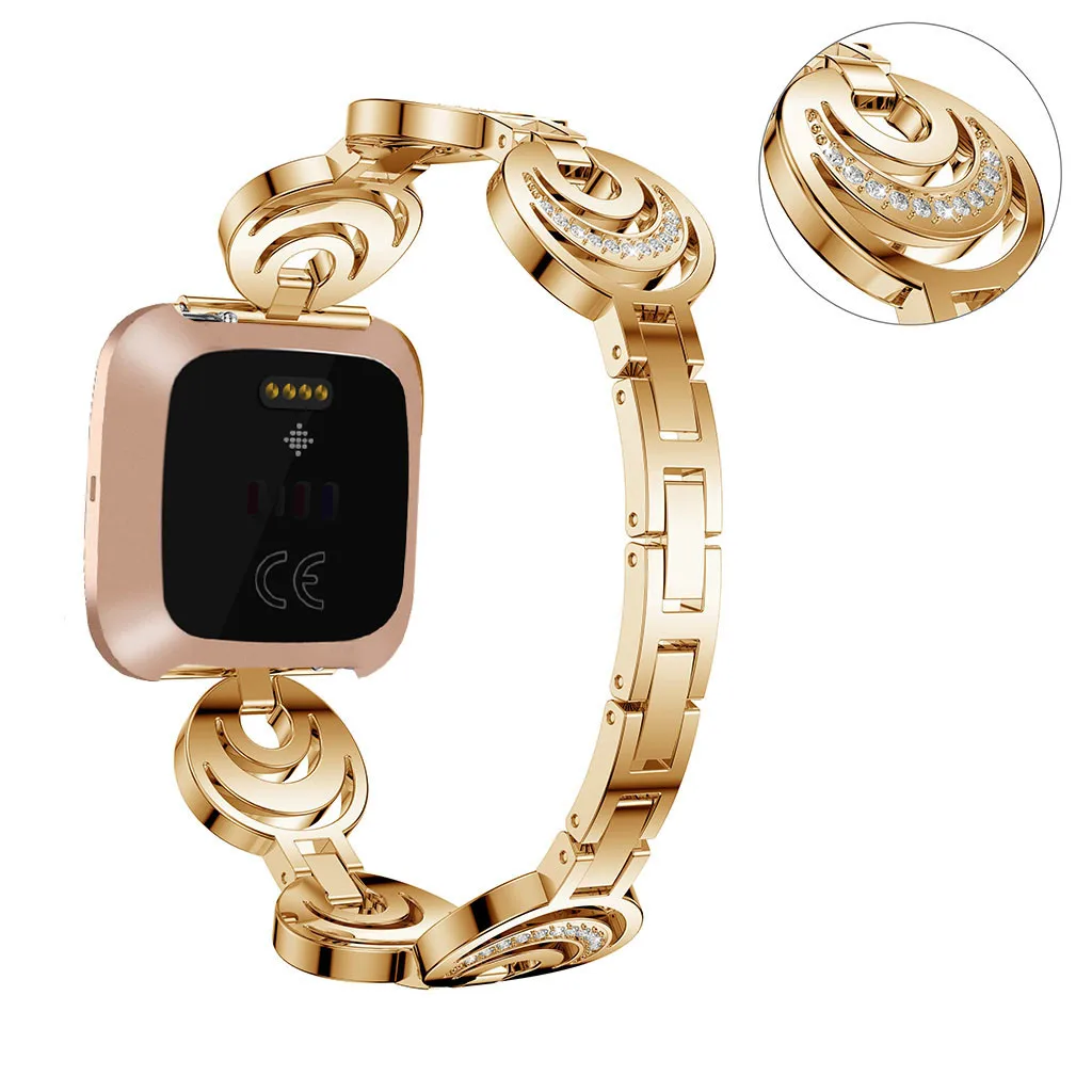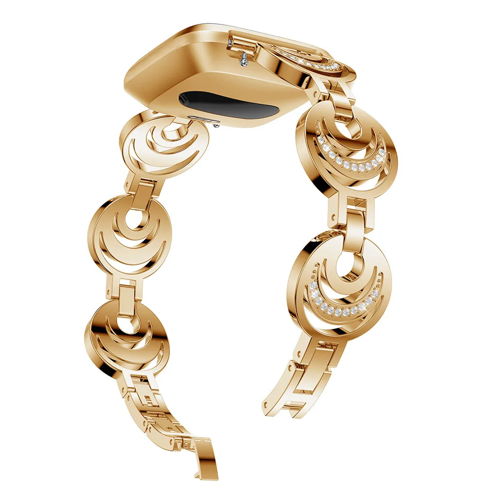 Мода полумесяц Тип кристалл металла часы ремешок для Fitbit Versa2