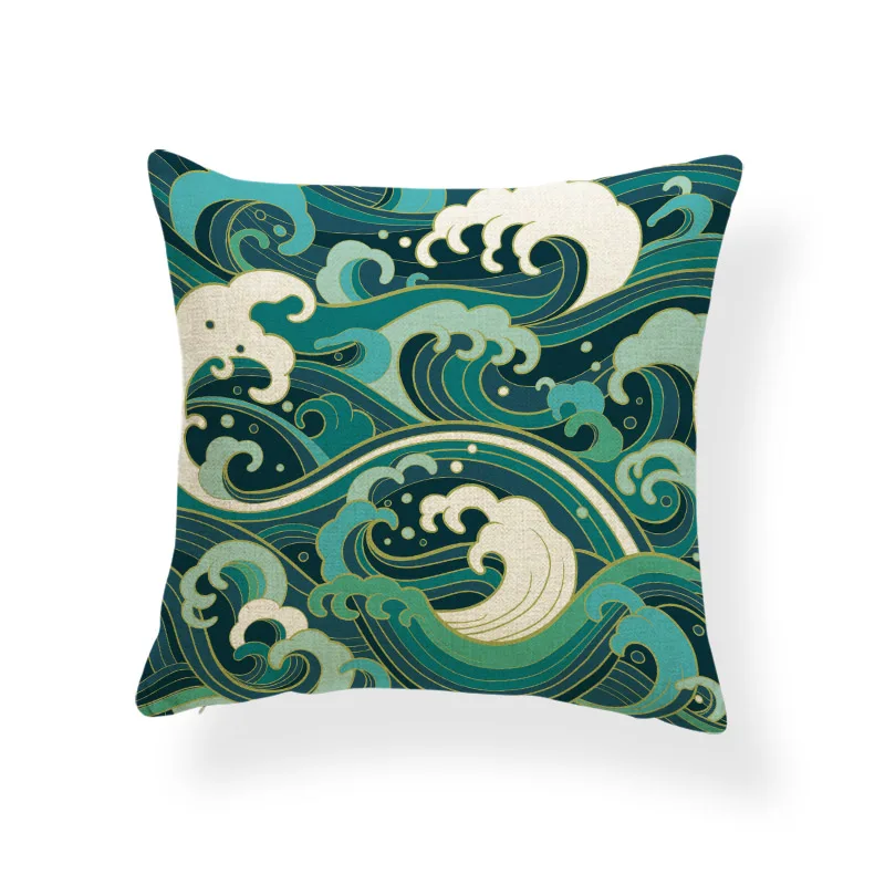 Синий, зеленый, морской волны, наволочка для подушки, чехол для дивана, креативный, Морской стиль, Cojines Decorativos Home 43-43 см, белый, синий, зеленый, темно-синий, морская волна, розовые цветы, горные волны, геометрическийОплата