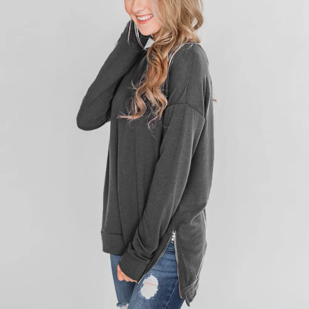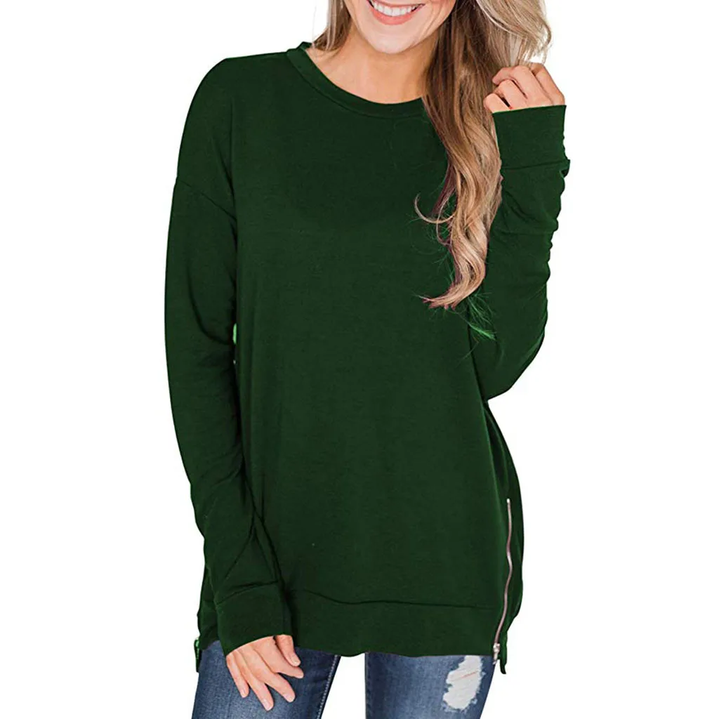 Женская толстовка на молнии с длинным рукавом и круглым вырезом