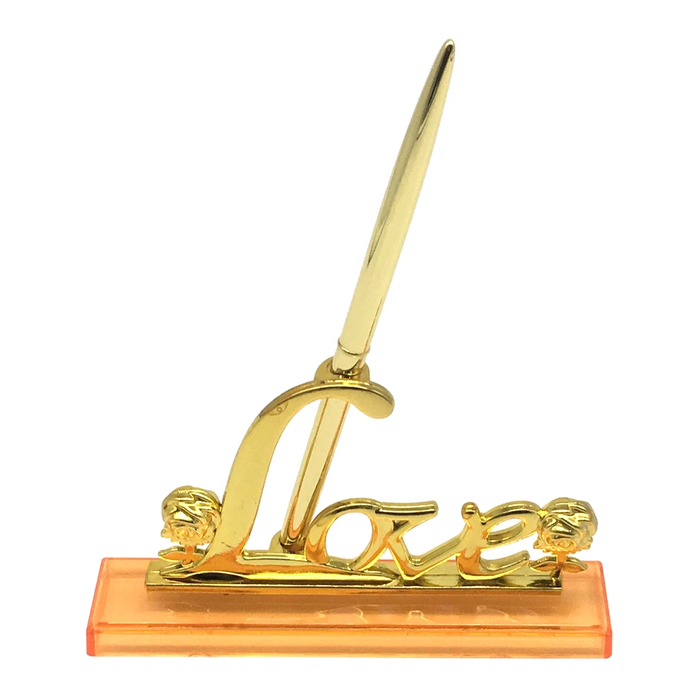 Новинка, 1 шт., ручка для свадебной вечеринки с золотым и серебряным покрытием, металлический держатель для влюбленных, набор ручек для записи книг, свадебные принадлежности
