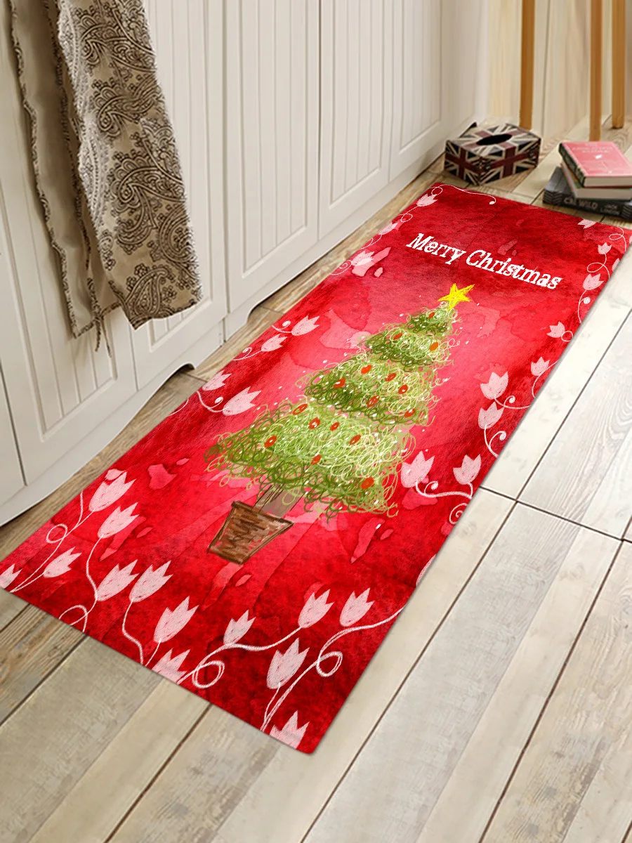 3D Рождественский нескользящий ковер для кухни комнаты напольный коврик фланелевый ковер Новая Рождественская елка Рождественское украшение для дома