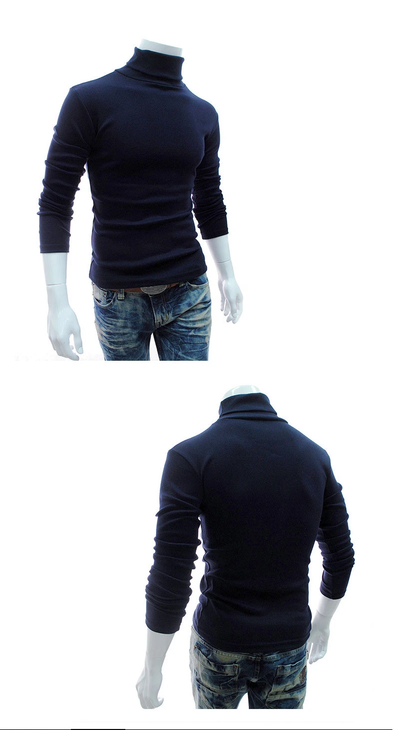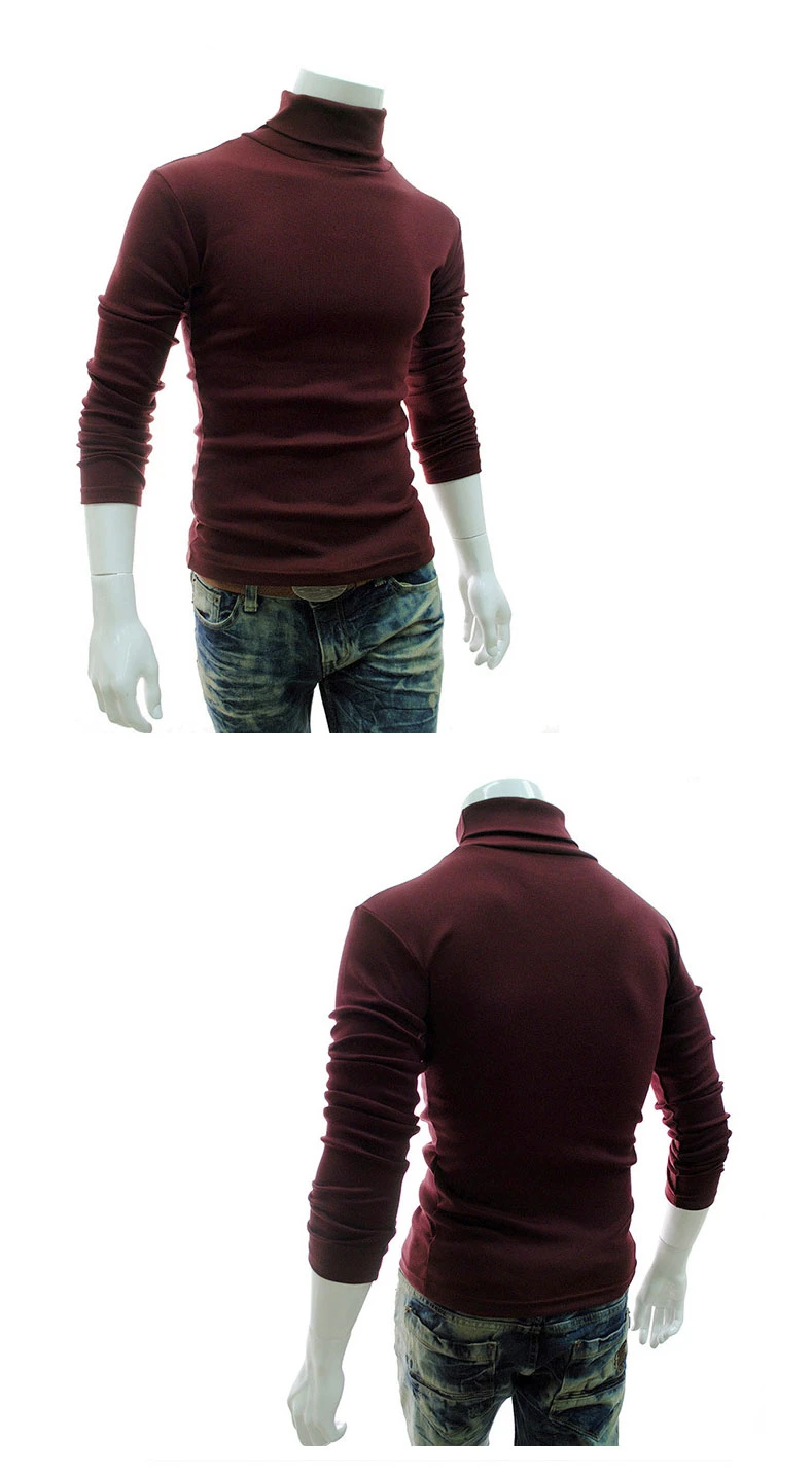 Новинка 2019, осенне-зимний мужской свитер, Мужская водолазка, Одноцветный Повседневный свитер, Мужской приталенный брендовый вязаный пуловер