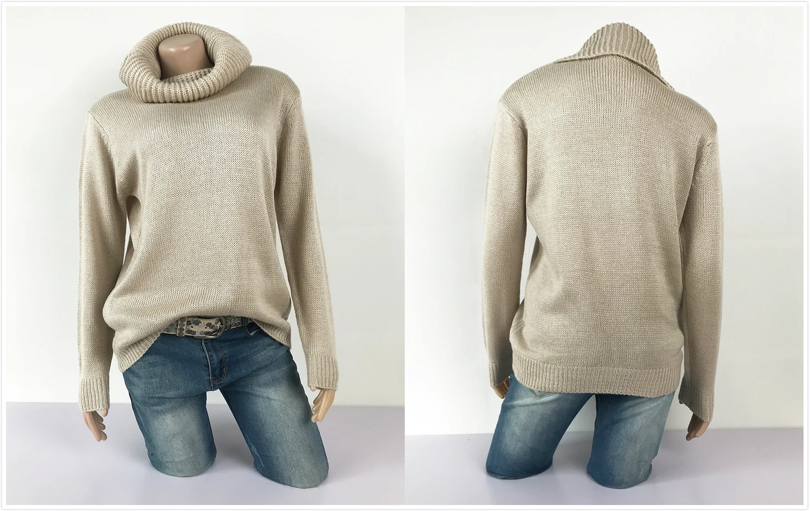 Women Turtleneck Knitted Sweater Warm Autumn Winter Knitwear Plus Size Pink Khaki Black Casual Sweater Pullover Tops Plain