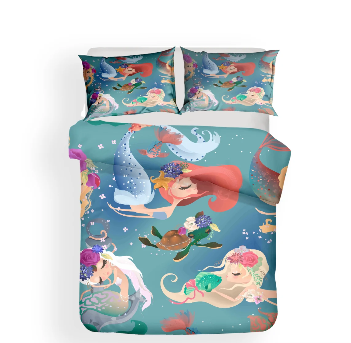 Домашний текстиль, морской мир, комплекты постельного белья, красивая черепаха-Русалочка, пододеяльник, одинарный, двойной, пододеяльник, для девочек, для спальни, Постельные одеяла, набор