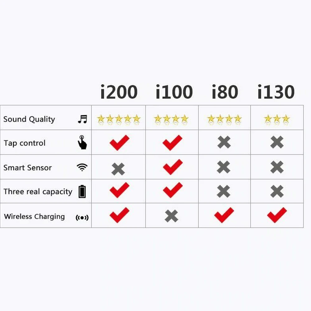 Это новые i200 TWS 5,0 наушники-макароны с белым, черным, розовым, зеленым, желтым, синим цветами на новейшем рынке. пожалуйста, обратите внимание, что эта новая модель не имеет функции интеллектуального датчика! пожалуйста, внимательно прочитайте перед заказом! Если вам нужно Беспроводное зарядное устройство. Пожалуйста, покупайте в нашем магазине вместе! Спасибо.