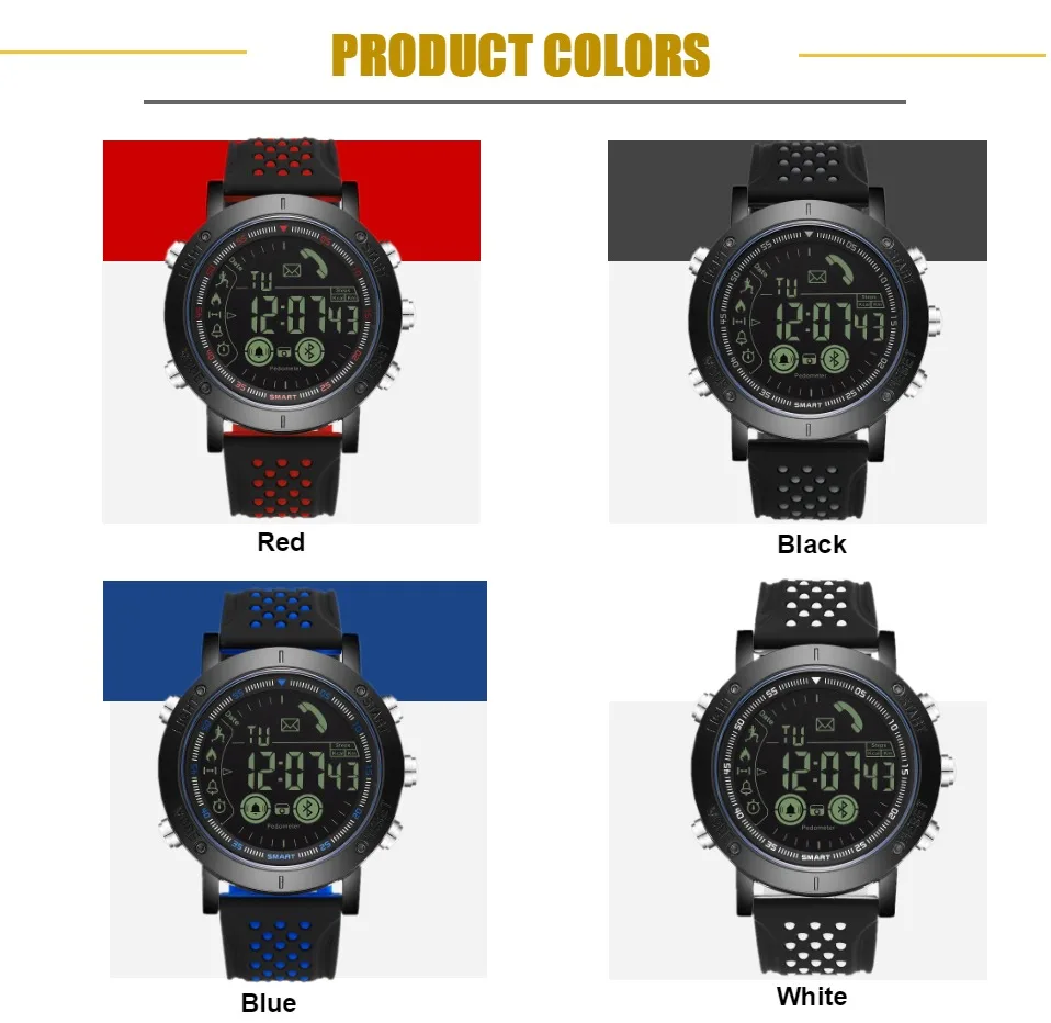 • Цвет ремешка: черный/белый/красный/синий