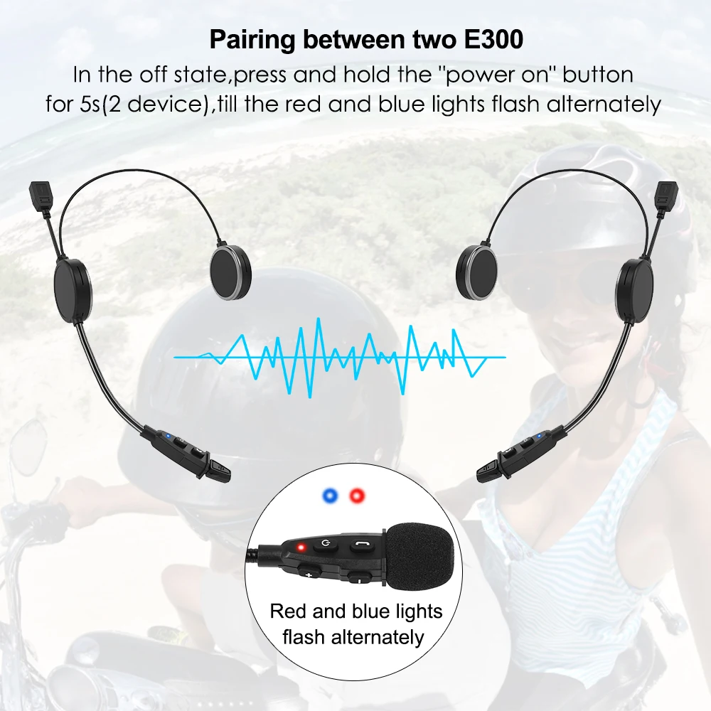 EJEAS E300 Bluetooth 4,2 мотоциклетный шлем наушники домофон AUX 40 мм динамик 2 подключение мобильных устройств