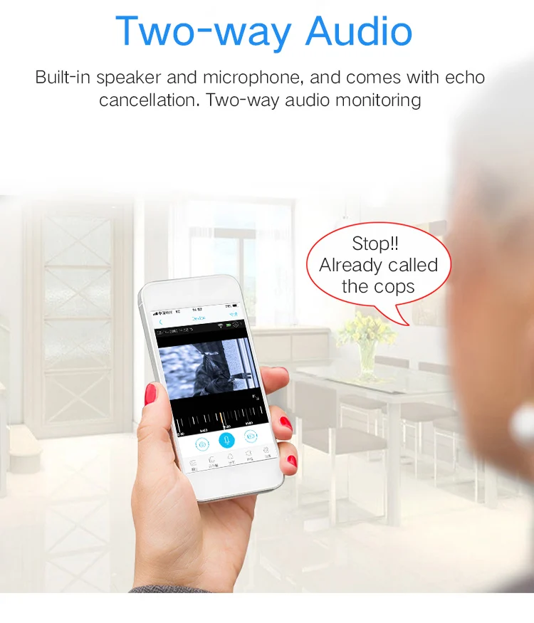 Built in microphone and speaker , support two way audio ;