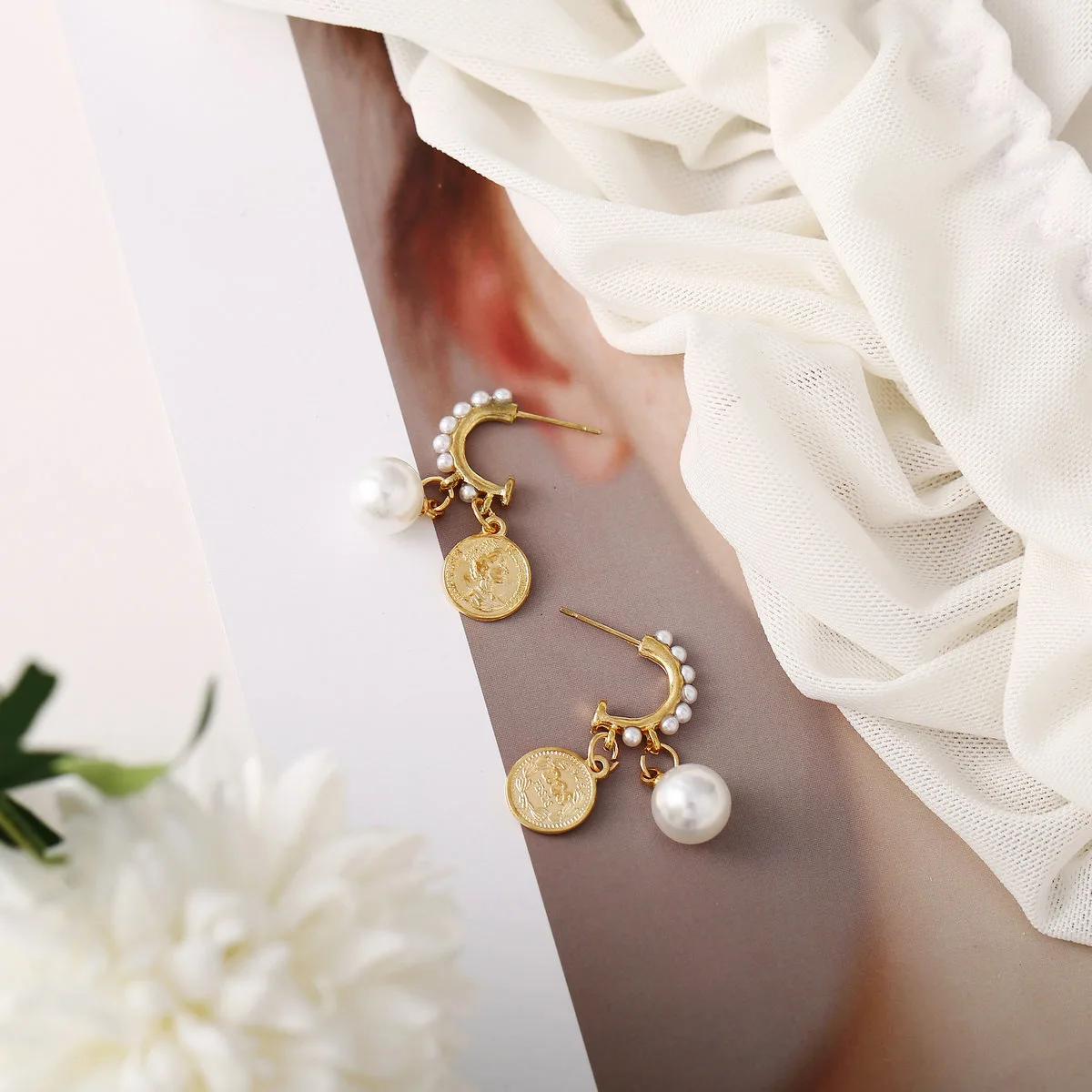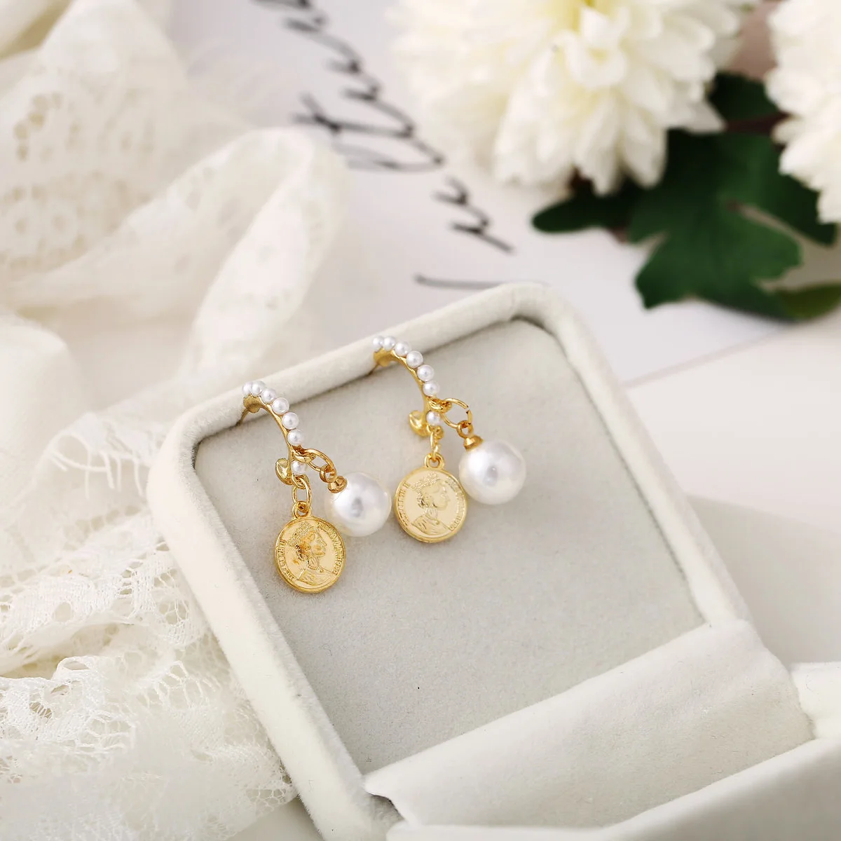 DIEZI, простые Винтажные висячие серьги с имитацией монет и жемчуга для женщин, женские массивные золотые металлические серьги, 2019, Pendientes