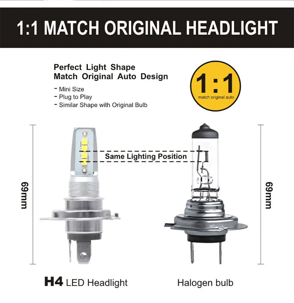 2 шт. H1 H11 Светодиодная лампа для фар 9005 9006 HB4 H3 H7 H4 Hi-Lo Beam Mini автомобильные аксессуары 12 в 24 Вт 6000 К