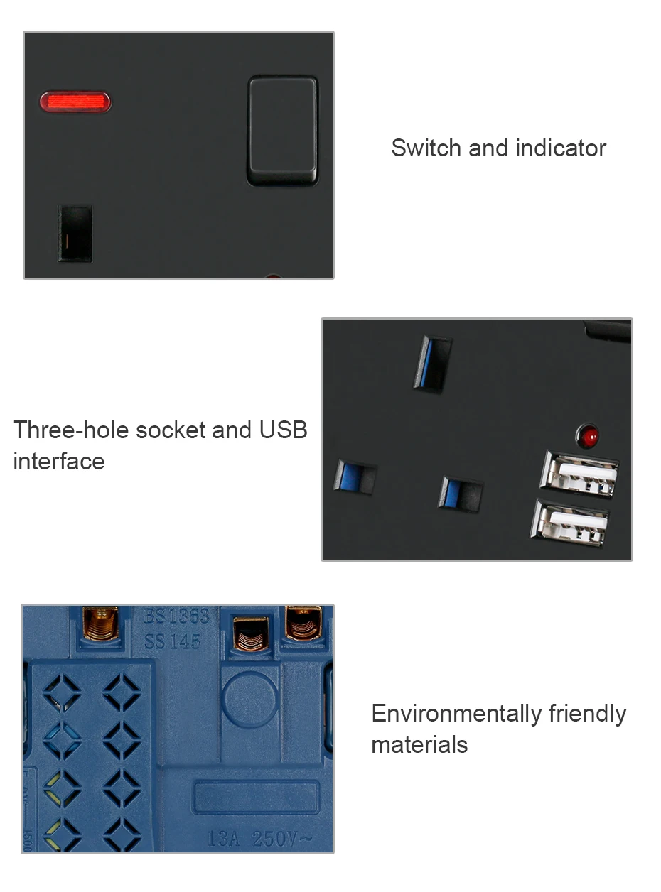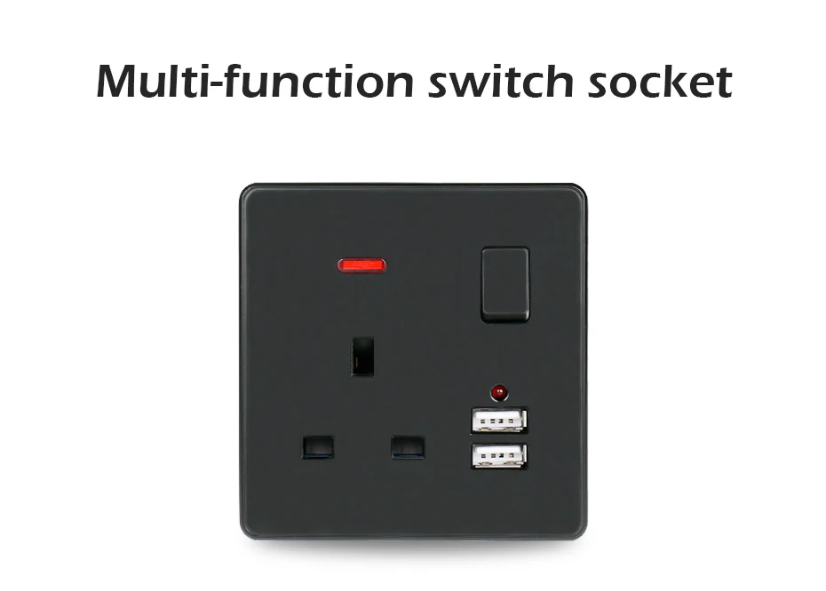Черная настенная розетка UNKAS 13A, стандарт Великобритании, переключаемая розетка 2.1A, двойной USB Порт быстрого зарядного устройства, светодиодный индикатор