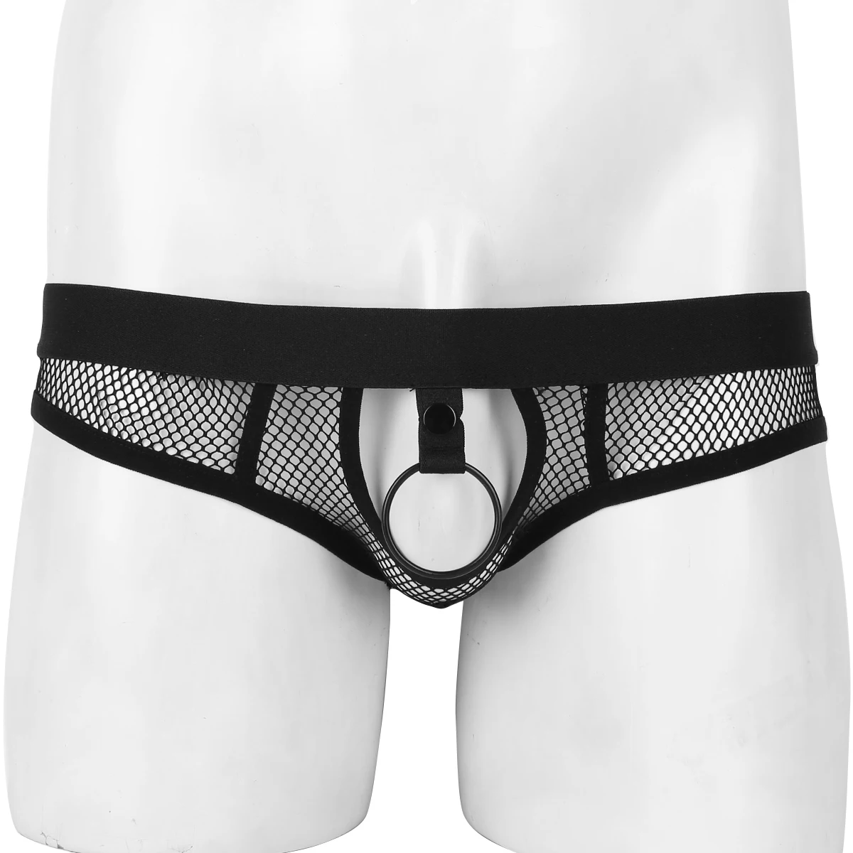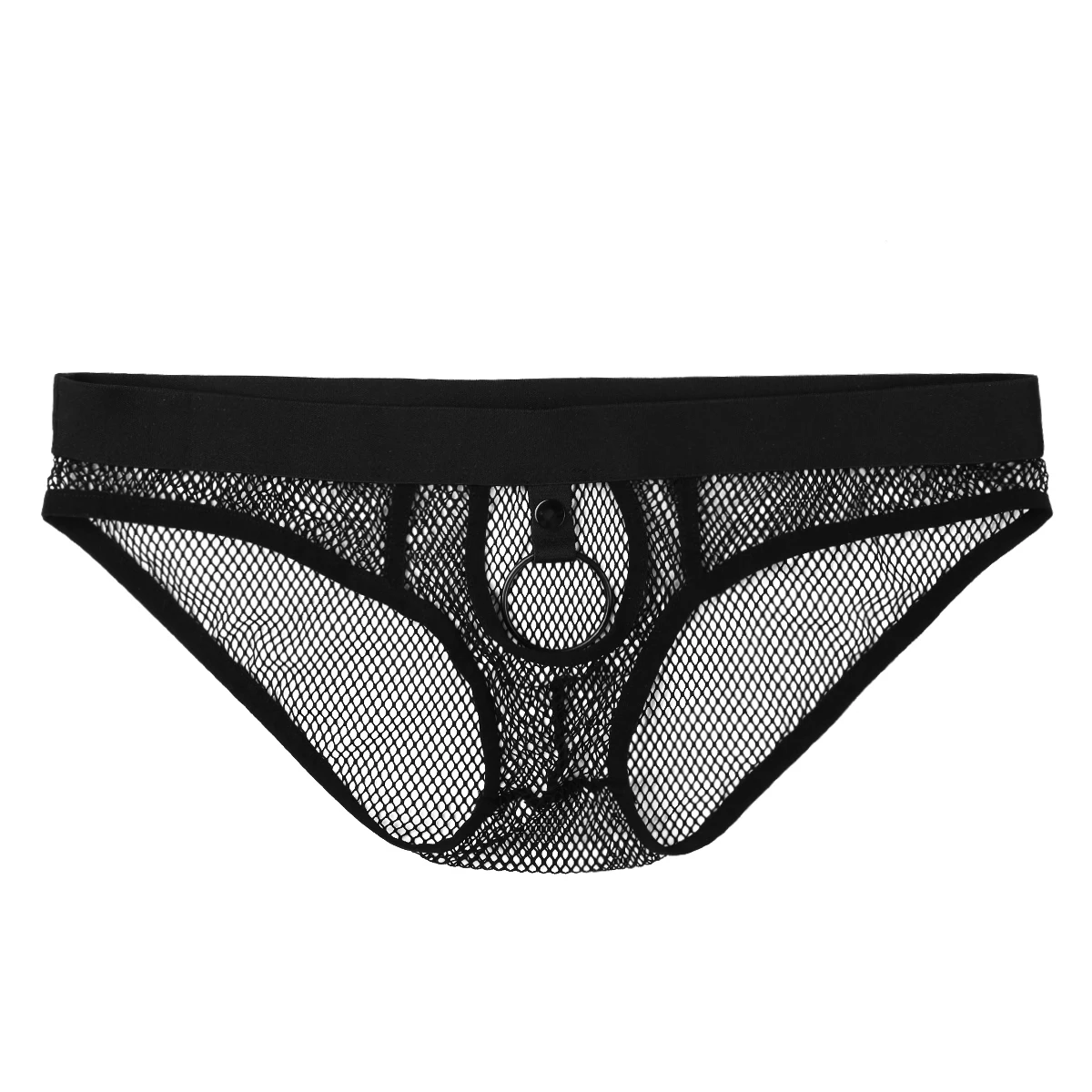 Мужские сетчатые трусы-бикини с открытым мешочком, нижнее белье, застежка-липучка.