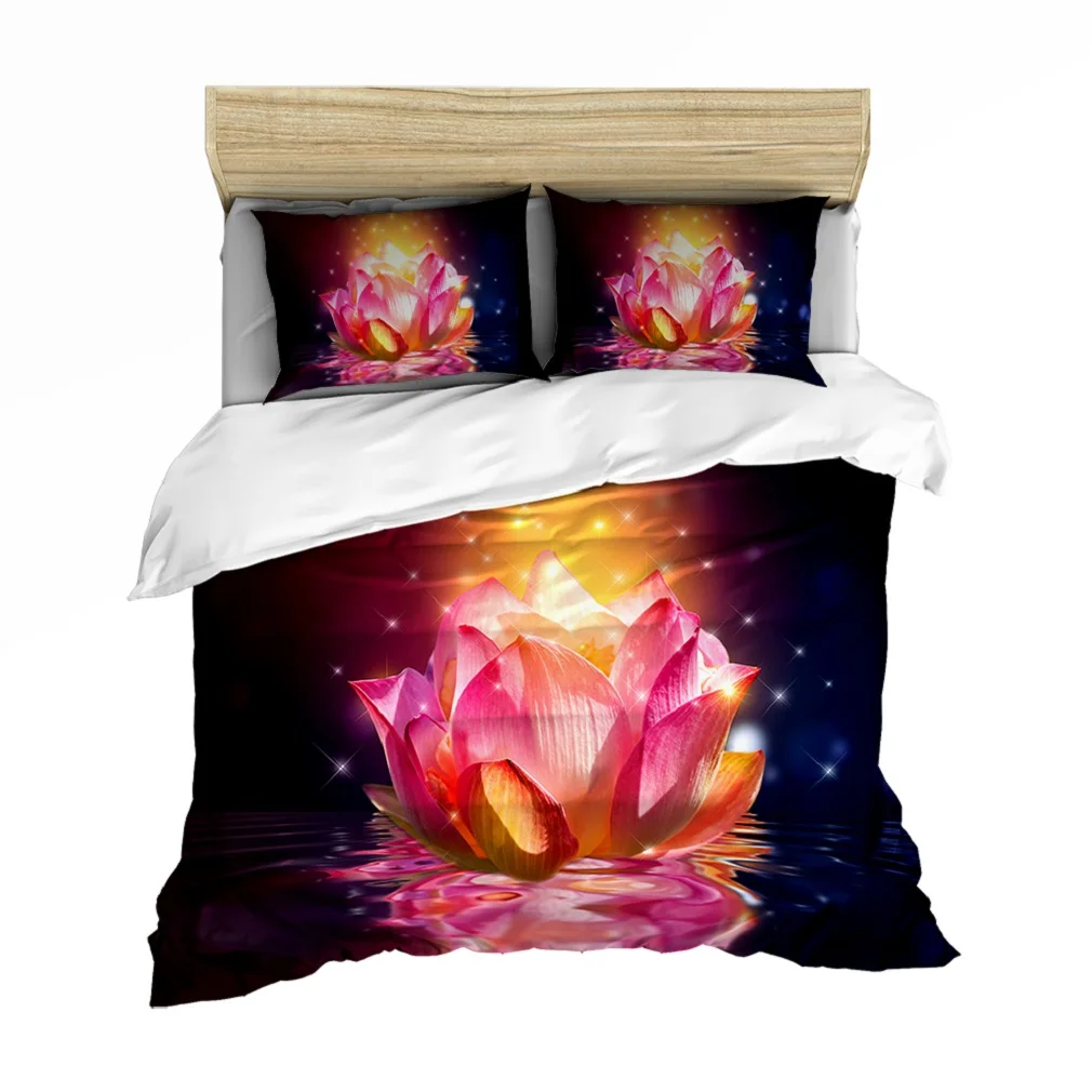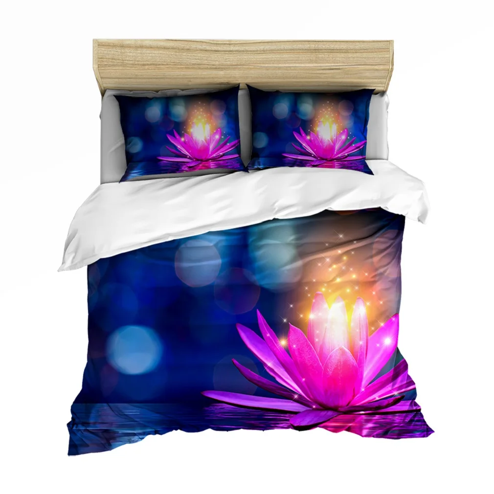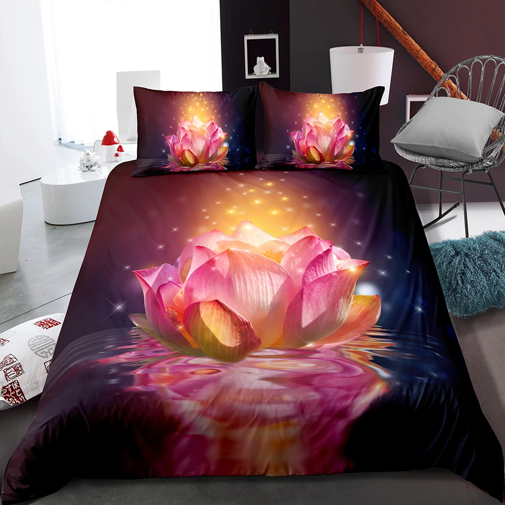 Сказочный Комплект постельного белья с изображением святого лотоса, приятный для кожи пододеяльник, наволочка для подушки, декор для комнаты для девочек, набор пододеяльников с двойным королевским размером