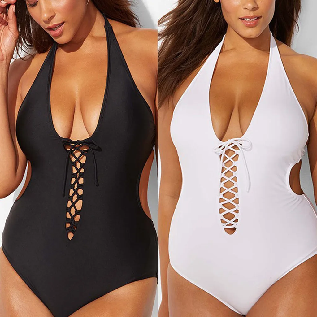 Женский купальник-бикини с глубоким v-образным вырезом и бретельками большого размера