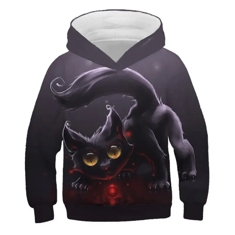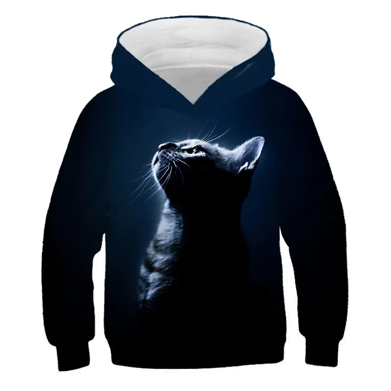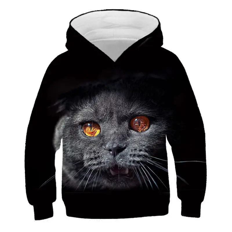 Толстовки с капюшоном для мальчиков и девочек с 3D Цифровым принтом «Счастливый Кот»