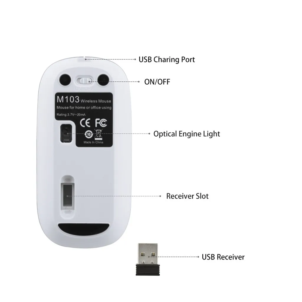 1. Перезаряжаемый 2,4G беспроводной Мышь: встроенная Высококачественная литиевая аккумуляторная батарея 450 мАч может служить до До 500 часов после полной зарядки. И в режиме ожидания длительное время автоматического сна И режим пробуждения. 2. Беспроводная технология 2,4G С регулируемым Dpi: легко подключается к ноутбукам или ПК с Broadcom Чипсет, без приемника, рабочий диапазон 15 м, меньше задержек.Технические характеристики