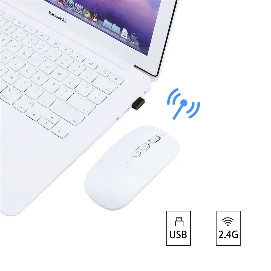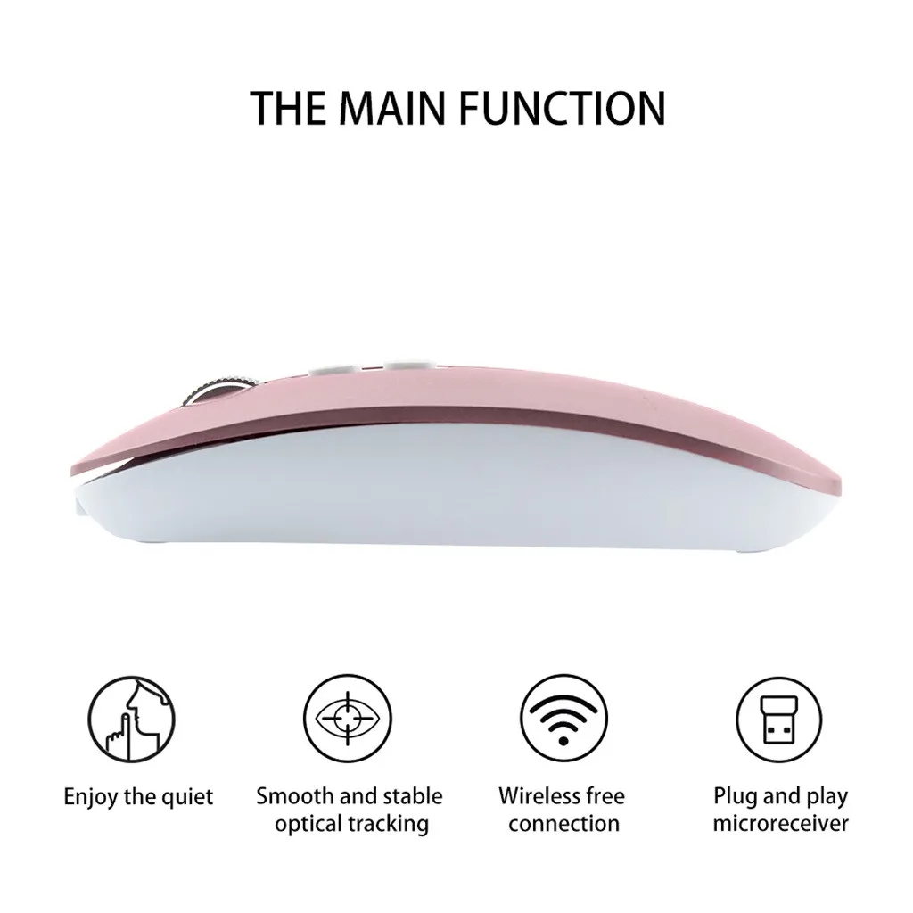Перезаряжаемый 2,4 г Беспроводная металлическая Бесшумная оптическая мышь с бесшумным кликом