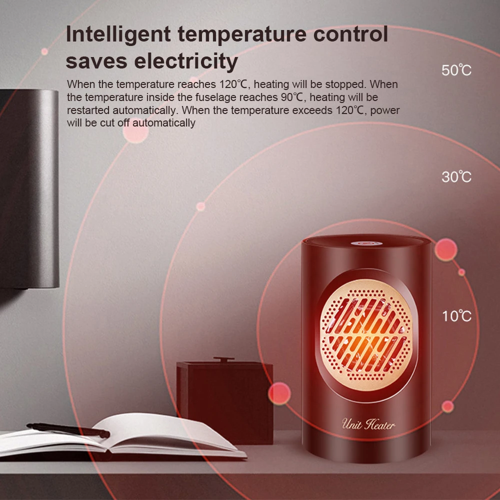 Довольно рабочий: нажав кнопку вращения, Нагреватель будет вращаться под углом 30 градусов, чтобы обеспечить более широкий и равномерный нагрев воздуха. Кроме того, обогреватель воздуха работает бесшумно и не будет мешать вашему сну, отдыху, чтению и так далее.