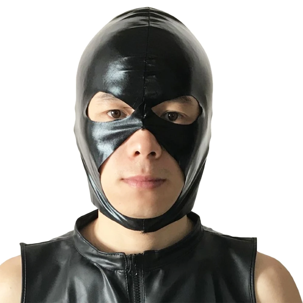 Эластичная искусственная кожа влажный вид с 3 отверстиями Связывание капюшон БДСМ открытые глаза и рот головной убор маска на все лицо капюшон для ролевых игр костюм