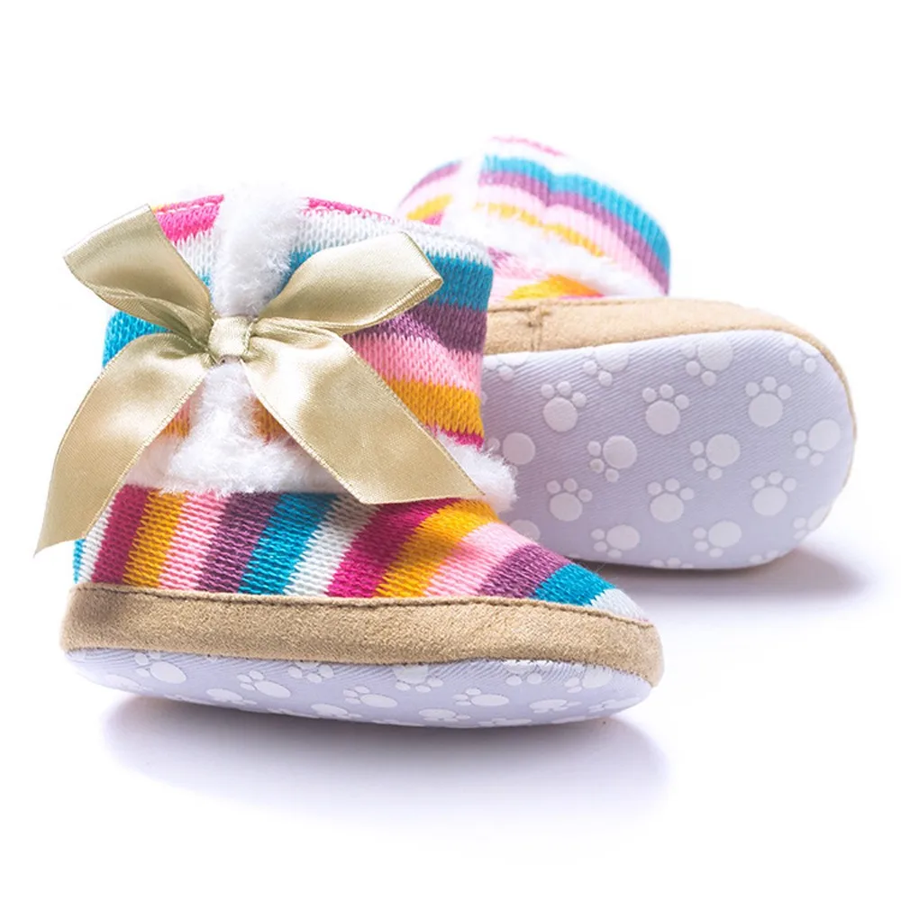 Зимние ботинки с мягкой подошвой радужной расцветки для маленьких девочек; Мягкие ботинки для малышей
