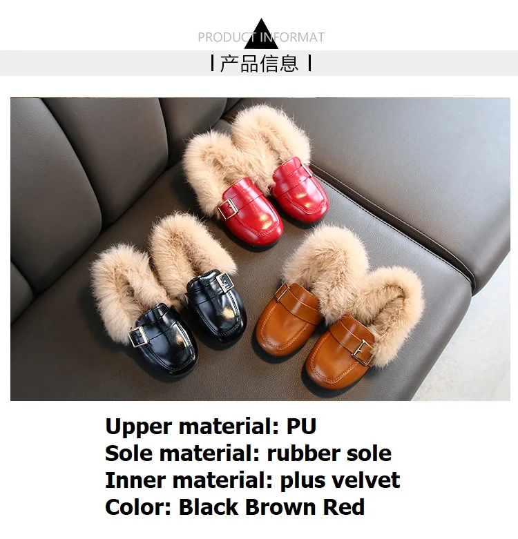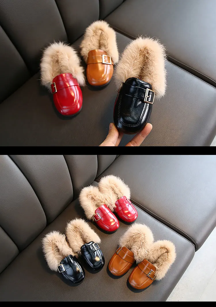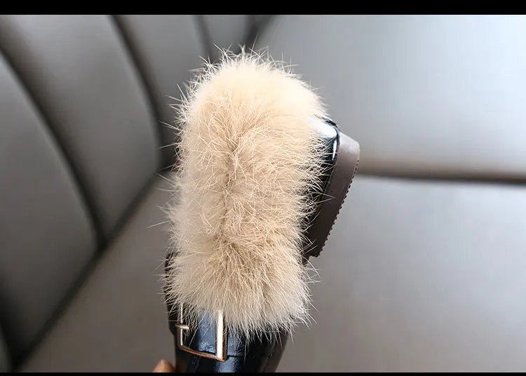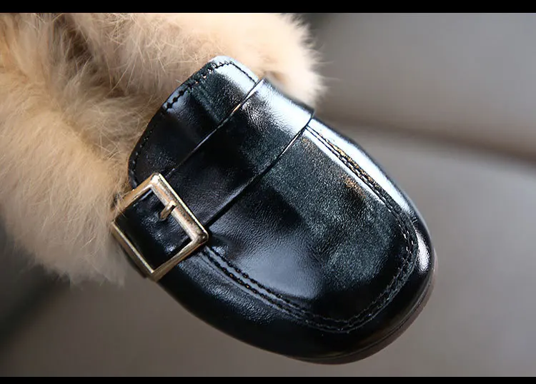 Обувь на плоской подошве для девочек; коллекция 2019 года; модная зимняя теплая детская обувь с кроличьим и Плюшевым Мехом; обувь принцессы из искусственной кожи с квадратным носком; детская обувь для маленьких девочек