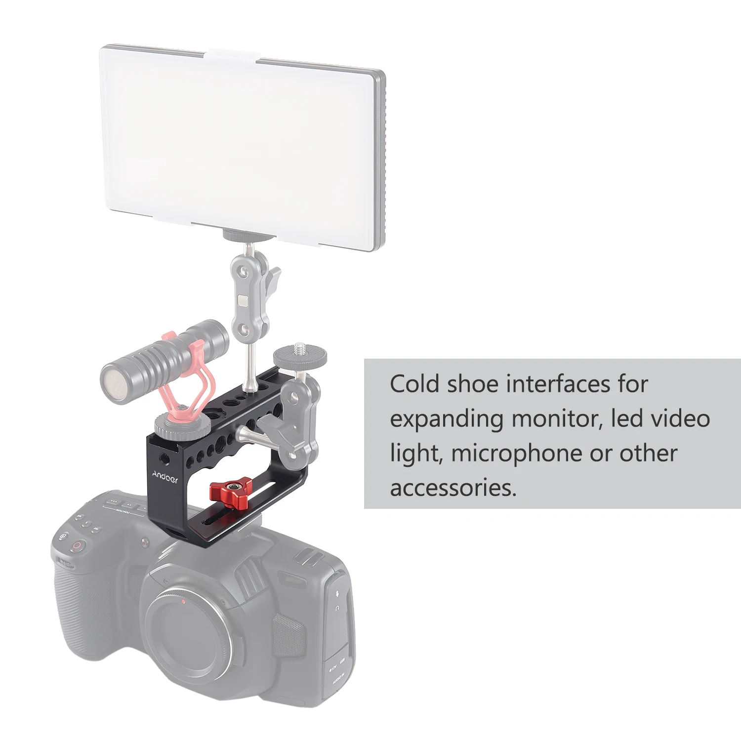 Ручка с 2 интерфейсами холодной обуви для расширения монитора, светодиодный видео светильник, микрофон или другие аксессуары, удобный в использовании.