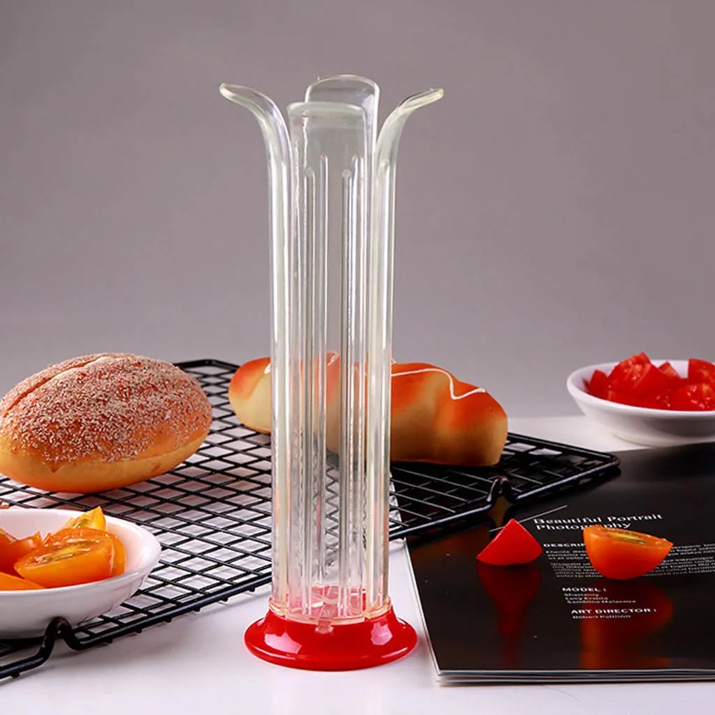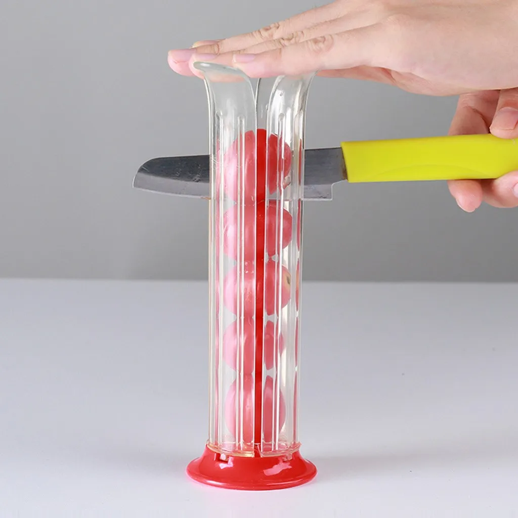 Идеально подходит для многих видов фруктов, таких как маленькие помидоры, виноград, вишня и так далее. Удобно использовать и легко чистить. Идеально подходит для изготовления фруктов или тортов для украшения фруктов дома. Резак держатель безопасности, кухонные аксессуары. Размеры: 19 × 6 см/7,48 × 2,36" Внутренний диаметр: 4 см/1,57"Посылка включает в себя: