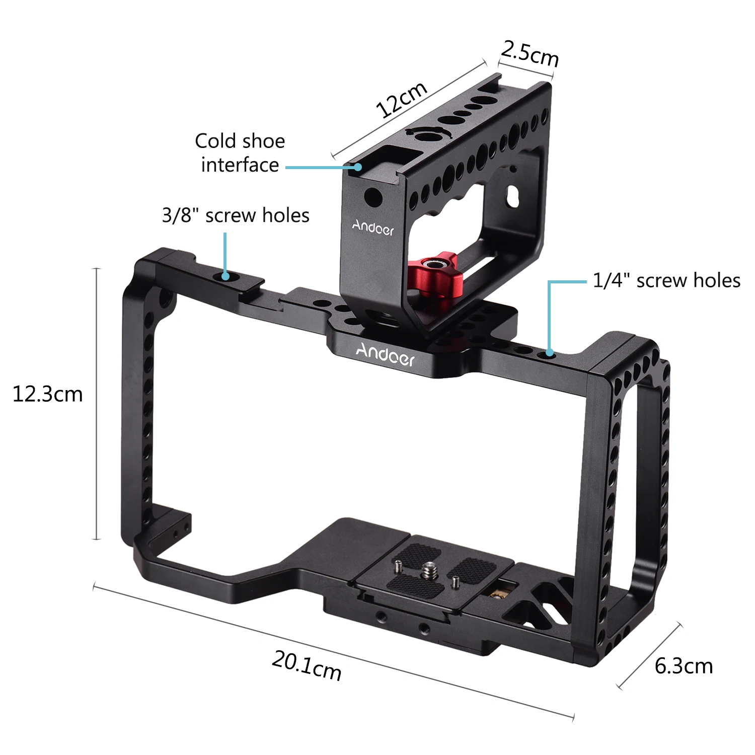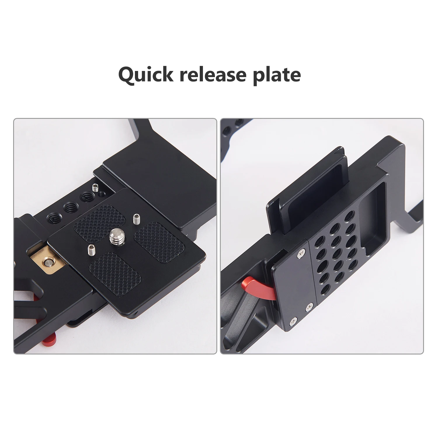 Клетка и верхняя ручка имеют резьбовые отверстия 1/4 дюйма и 3/8 дюйма, крепление для холодной обуви для расширения аксессуаров для фотографии, таких как монитор, микрофон, светодиодный светильник и другие аксессуары. Контакты ARRI locking позволяют прикрепить больше аксессуаров.