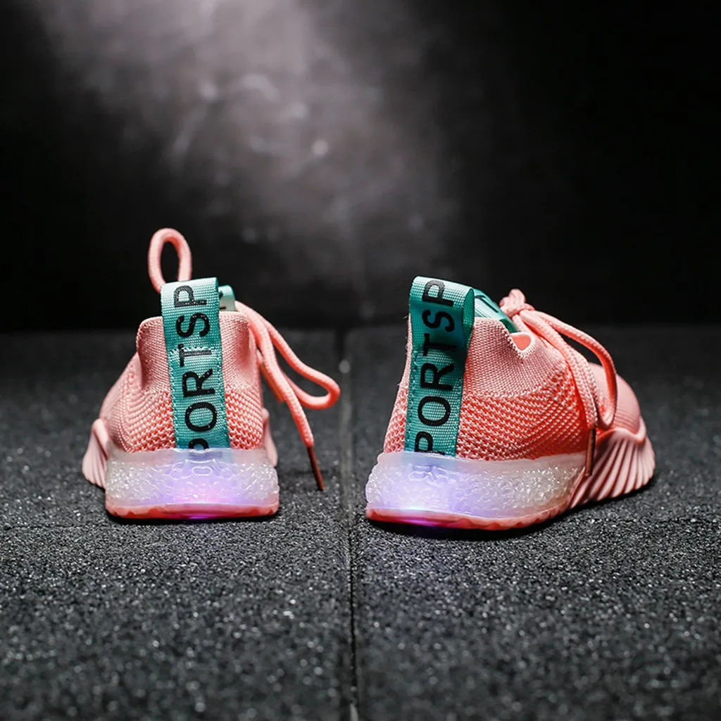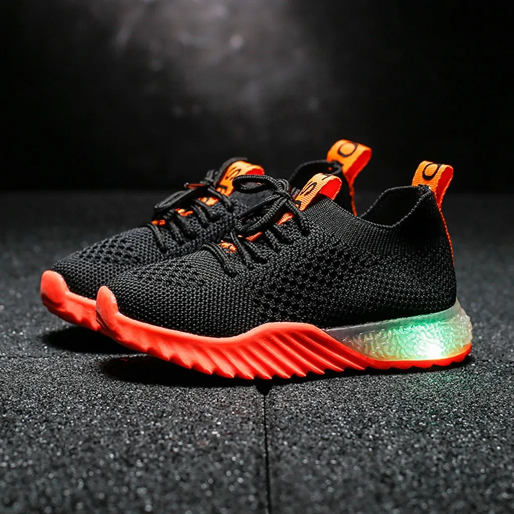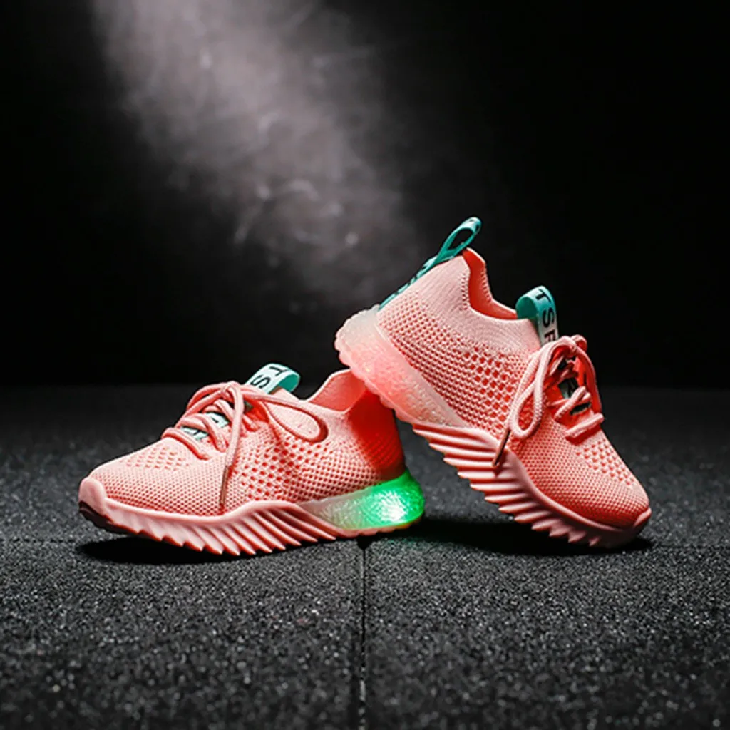Детская одеждаДетские сетчатые кроссовки для маленьких мальчиков и девочек со светящимися вставками; Спортивная обувь для бега
