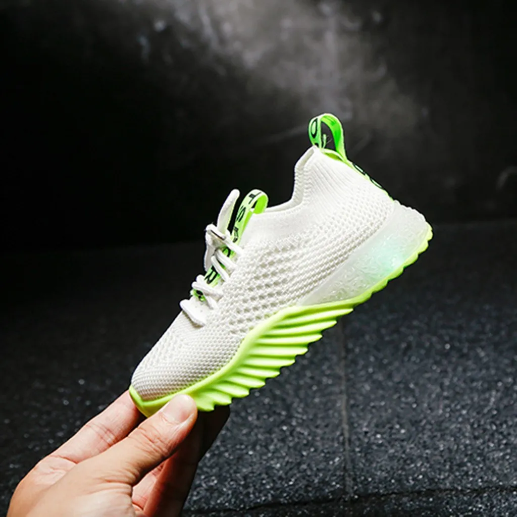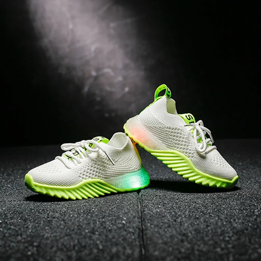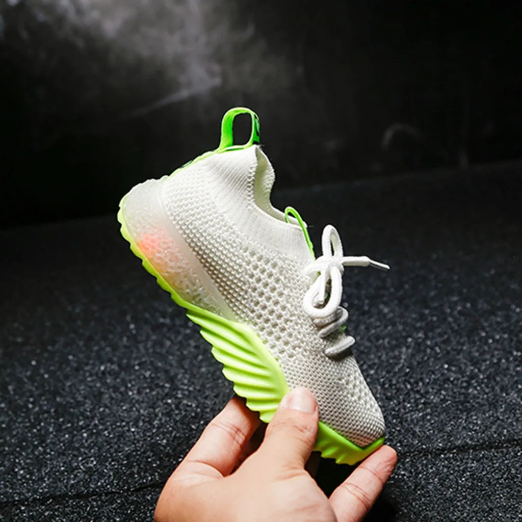 Детская одеждаДетские сетчатые кроссовки для маленьких мальчиков и девочек со светящимися вставками; Спортивная обувь для бега