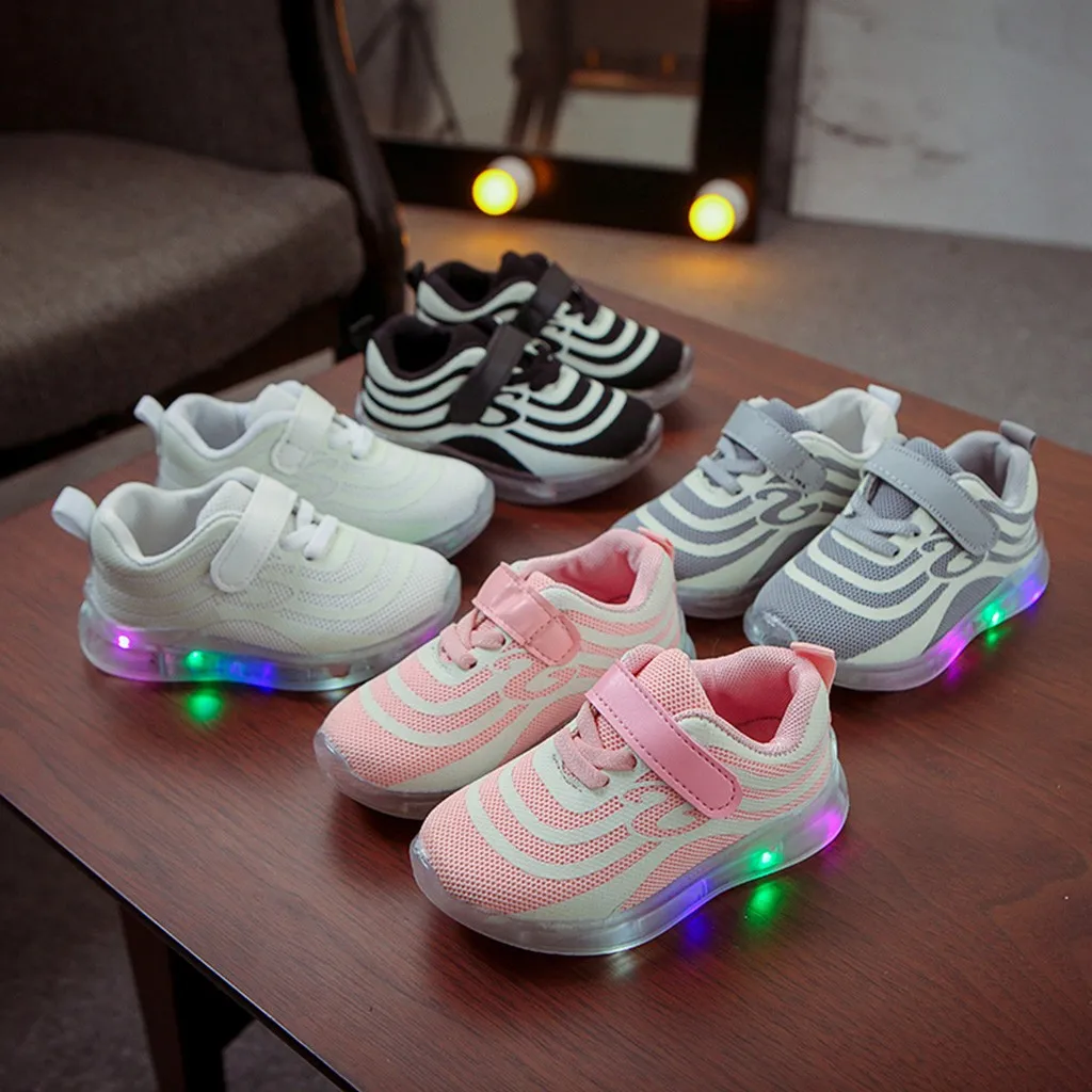 Детские сетчатые светящиеся спортивные кроссовки для бега; Повседневная обувь