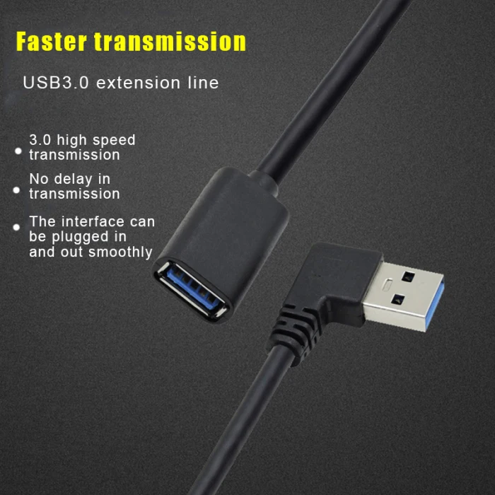 USB 3.0 Extension Cable 90 Degree Angle High Speed Portable for Home Office Business GK99