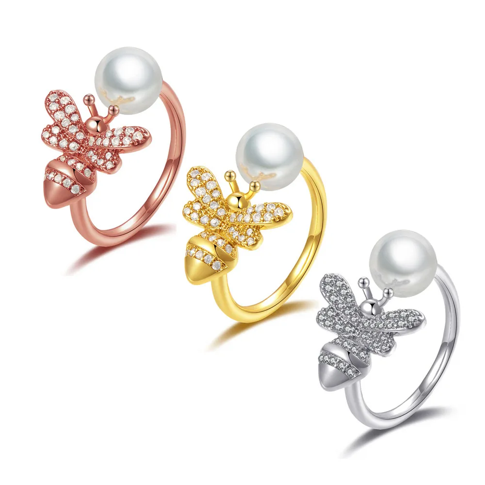 Материал: медь, циркон, искусственный жемчуг Стиль: Корейский стиль Форма: пчела Процесс обработки: покрытие Упаковка: индивидуальная упаковка Общие сведения: Женский Цвет: золото, розовое золото, серебро В комплект входит: 1 кольцо