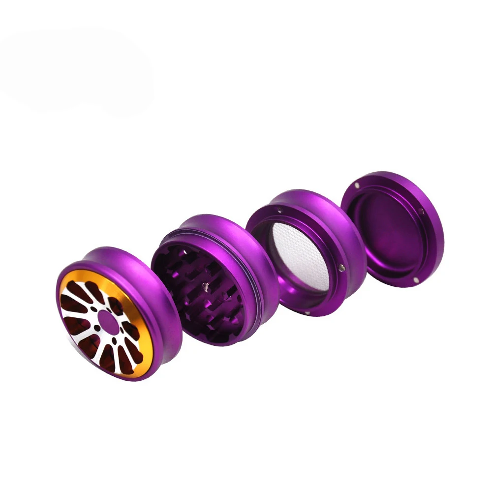 Материал: высококачественный алюминий Диаметр: 56 мм/2,20 дюйма Высота: 55 мм/2,17 дюйма Вес нетто: 171 г/шт. Цвет: синий/серый/золотой/фиолетовый (4 цвета полностью) Зубы: острые алмазные зубы Слоев: 4 слоя Дизайн: форма ступицы колеса Использование: нарезанный табак Упаковка включает: 1 х колесо воздушного ремесла ранга алюминия курительная травяная мельница