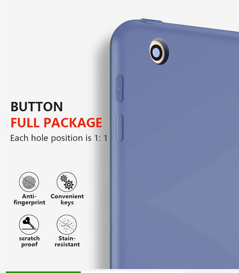 1. Мягкий и дышащий, защитный чехол, который дышит. 2. Ультра-тонкий и ультра-прозрачный, подходит для голых металлических планшетов. 3. Сотовое отверстие рассеивает тепло и рассеивает часть горячего воздуха, чтобы продлить срок службы планшета. 4. Интеллектуальная энергосбережение, сон просыпается. 5. Точное выдолбление, продуманное и интимное, не влияет на работу.