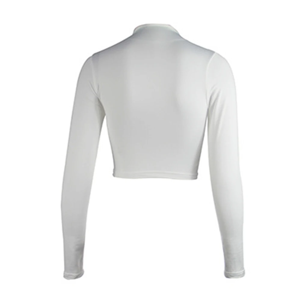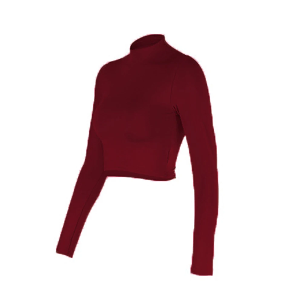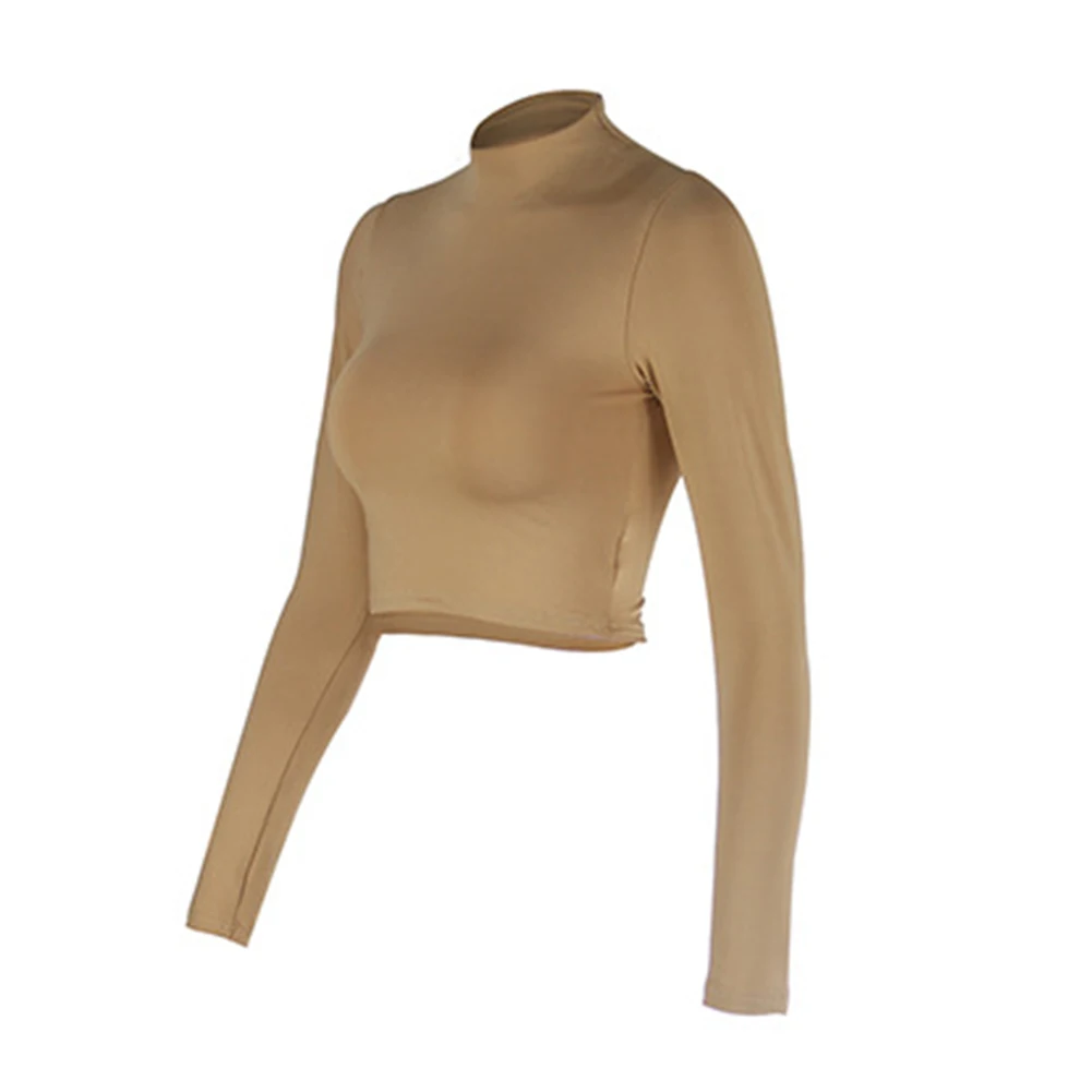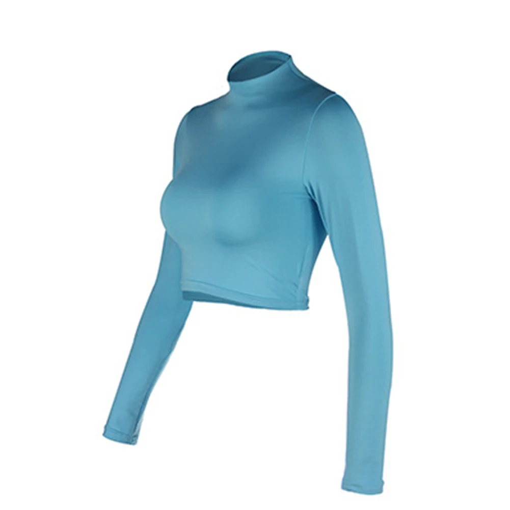 Сексуальный женский осенне-зимний однотонный облегающий укороченный топ с круглым вырезом и длинным рукавом
