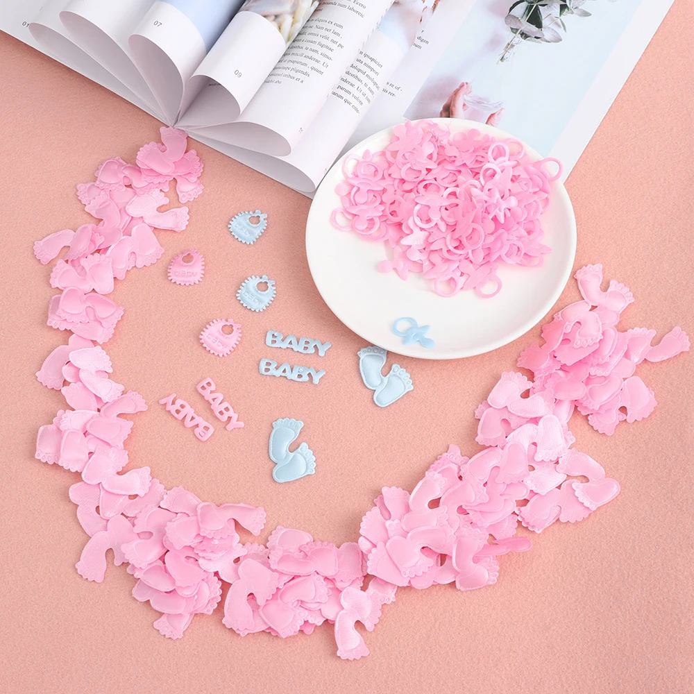 Hot 100pcs Baby Shower Confetti Table Party Sprinkle Birthday Footprint Pacifier Bib Style Boy Girl Baby Shower Decor Kids Favor