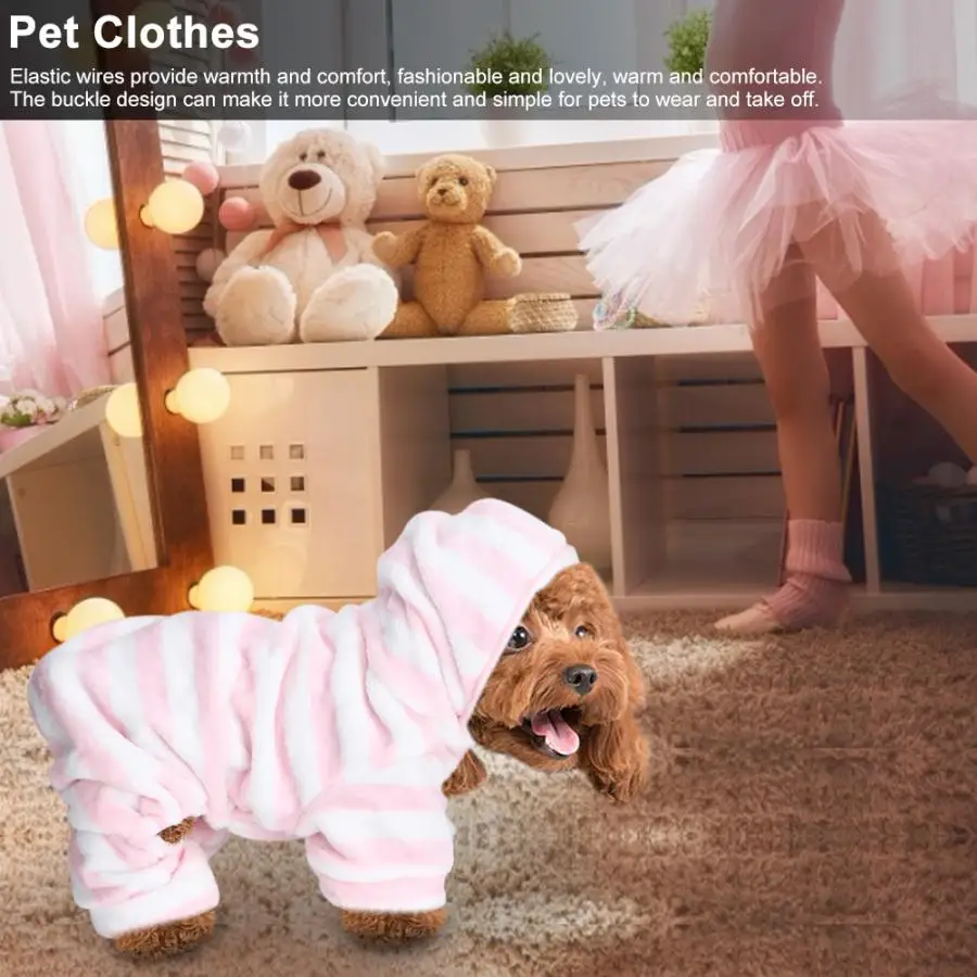Коралловый флис, розовая полоска, Осень-зима, четыре фута, толстовки для домашних животных, одежда, теплые пижамы, одежда для собак, кошек