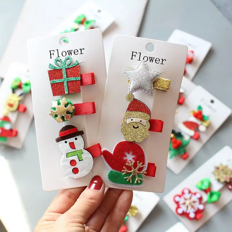 3 шт./карта, рождественские аксессуары для волос с героями мультфильмов для маленьких девочек, милые детские заколки, заколки для волос, подарки для младенцев, новые заколки