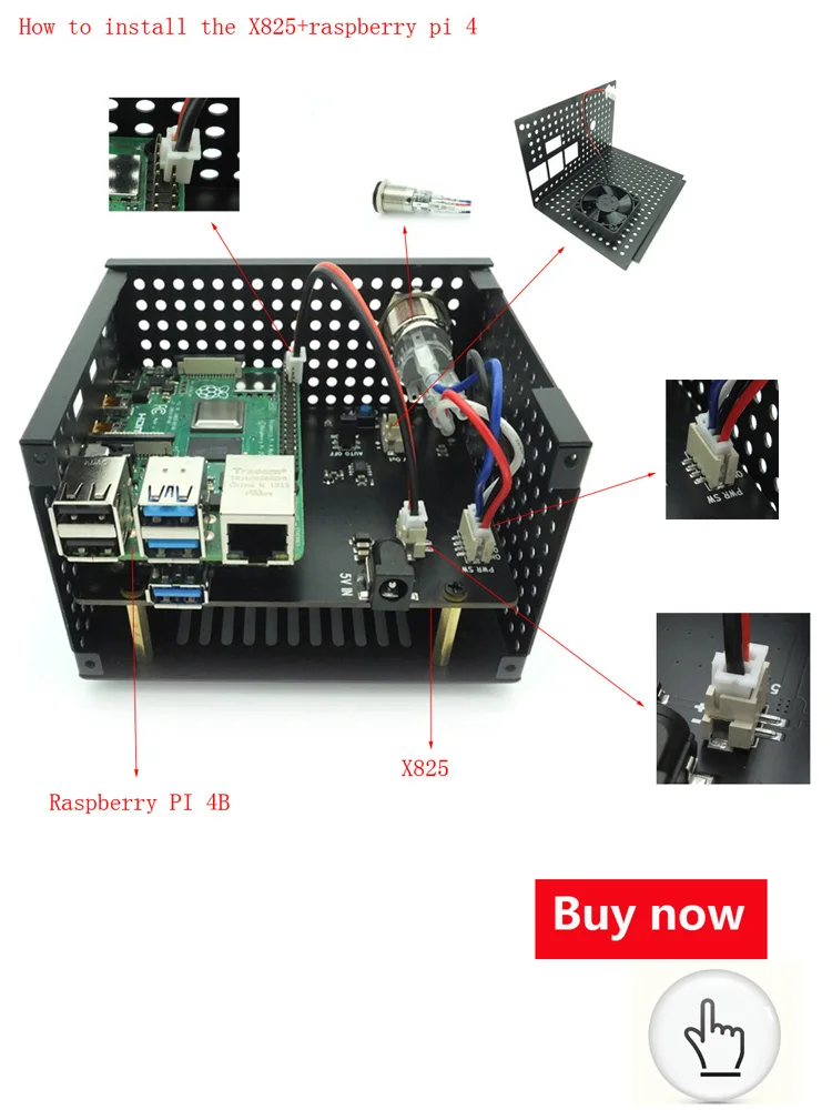 Описание]: X825 Raspberry Pi 4 Модель B 2,5 дюймов жесткого диска SATA HDD/SSD хранения плата расширения. Вы можете сделать свое собственное Облачное хранилище или частную систему хранения NAS дома. Плата расширения X825 обеспечивает полное решение для хранения новейшей raspberry pi 4B. Он поддерживает до 4-х никель-металл-ТБ 2,5-жесткий диск SATA жесткий диск диски (HDD) /Твердотельный накопитель (SSD). Только 2,5 дюймов SATA интерфейс жесткого диска/SDD жесткий диск подходит для X825 доска. Обновлен до порта USB3.1 Gen1. X825 подходит только для Raspberry Pi 4 Model B! [Особенности]: Легко собирается Совместимость с ОС: все операционные системы Raspberry Pi Порт USB3.1 Gen1 Поддерживает до 4 ТБ 2,5-жесткий диск SATA жесткий диск диски (HDD) /твердотельный накопитель (SSD) (теоретически он может работать с 6 ТБ или 8 ТБ, а также. Но на самом деле мы не тестируем X825 плату с 6 ТБ или 8 ТБ HDD, вы можете попробовать.) Идеальное решение для хранения Raspberry Pi 4 Model B Кнопка включения/выключения питания (нажмите и удерживайте кнопку нажатия ed, по крайней мере, 2s-off) Питает Raspberry Pi через Pi 40-штыревой разъём Светодиодный индикатор красного цвета указывает состояние питания и синий индикатор указывает состояние привода Контроллер моста USB 3,1 Gen1 to SATA 6 ГБ/сек. Быстрая передача файлов с высокоскоростным подключением USB 3,1 с ПК или Mac Мощность s Raspberry Pi-нет дополнительного источника питания для RPi 4 [Требования к источнику питания]: Мощность питания: переменный ток 100 - 240V Зарядное устройство переменного тока, 50/60 Гц, 5V DC 4A выход DC Мощность штекер Размеры: 5,5*2,5 мм Важное Примечание: Пожалуйста, используйте высококачественный источник питания постоянного тока 5 В 4 А. Низкое качество источника питания, возможно повреждение вашего 2,5 дюймов HDD/SSD. [Посылка включает в себя]: Комплект 1: Металлический Чехол X825-1 шт. 1 x Переключатель управления питанием 1 мини-вентилятор (с 4 винтами) Комплект 2: 1 x X825 V1.2 Плата расширения 1 разъем USB 3,1 1 х 2 Pin Мощность соединительный провод (кабель: 12 см/4,72 дюймов) 1 x Монтажная винтовая посылка Монтажные отверстия [Техническая поддержка]: Http://www.suptronics.com/miniPCkits/x825.html