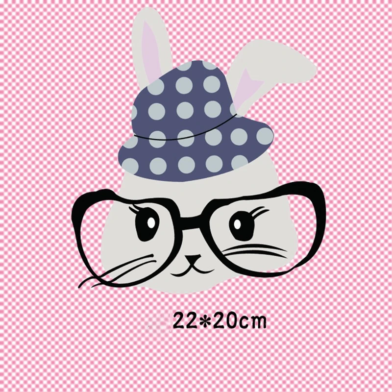 Модные Мультяшные очки с кроликом, утюгом на наклейках, моющиеся Аппликации, а-уровень теплопередачи для DIY аксессуаров, декора одежды