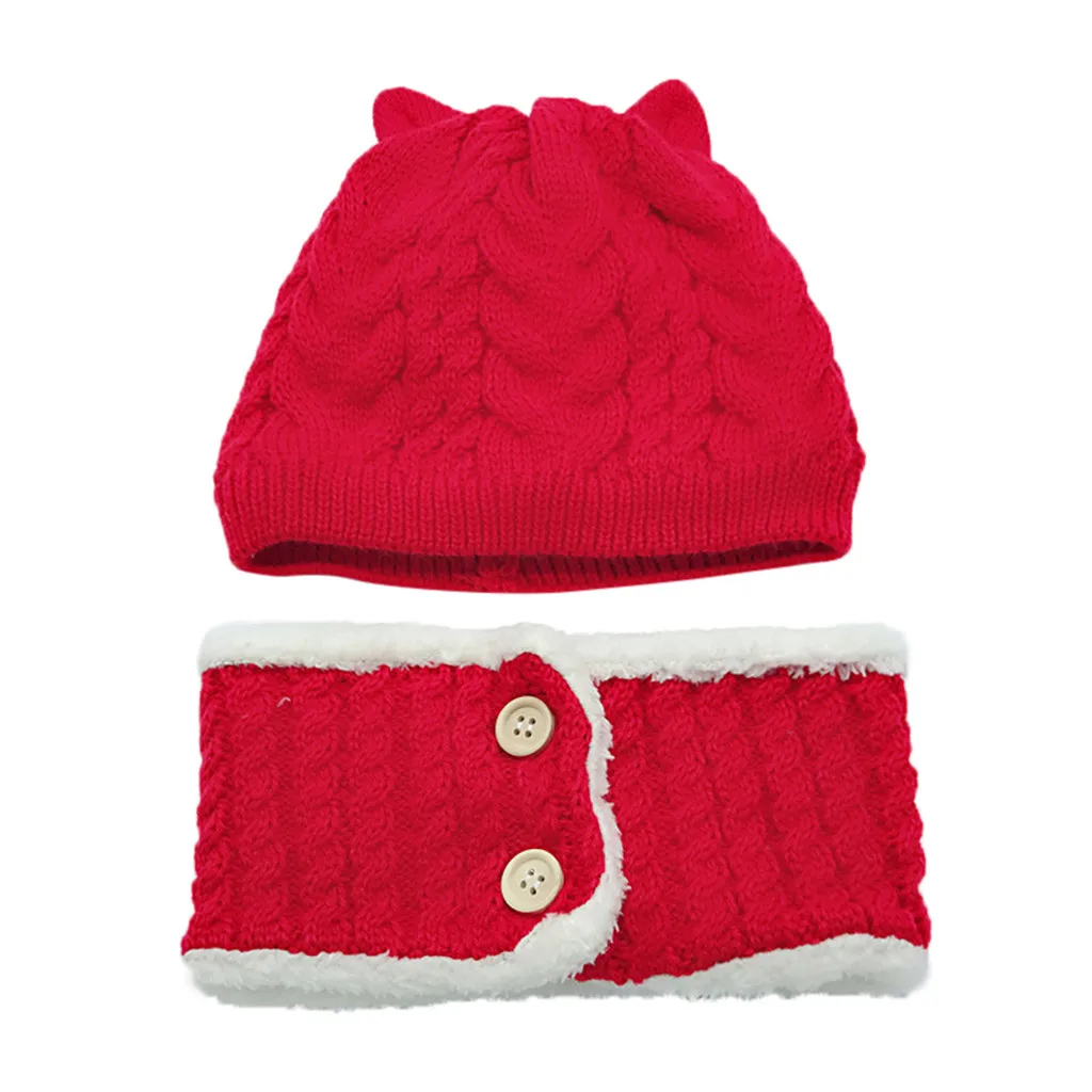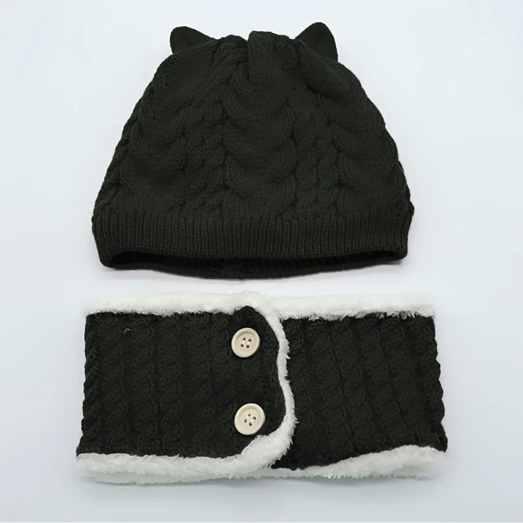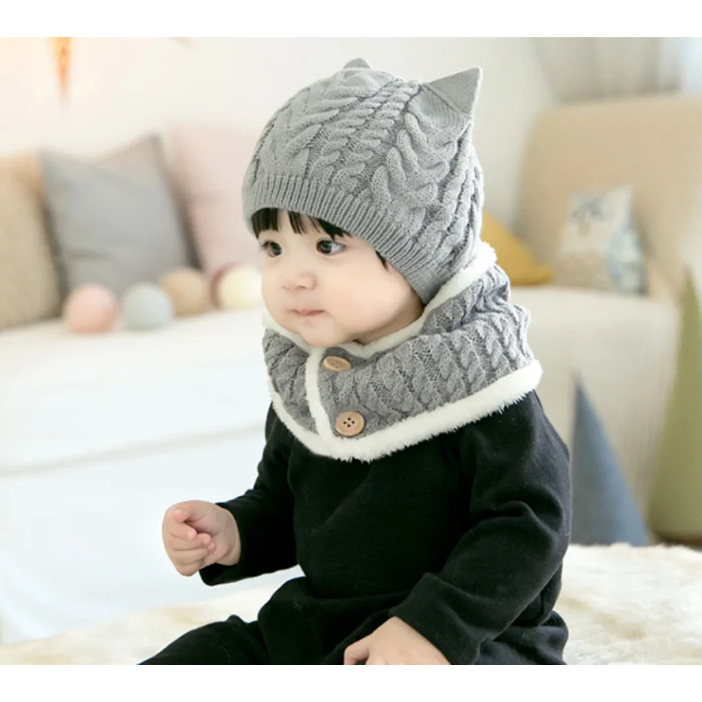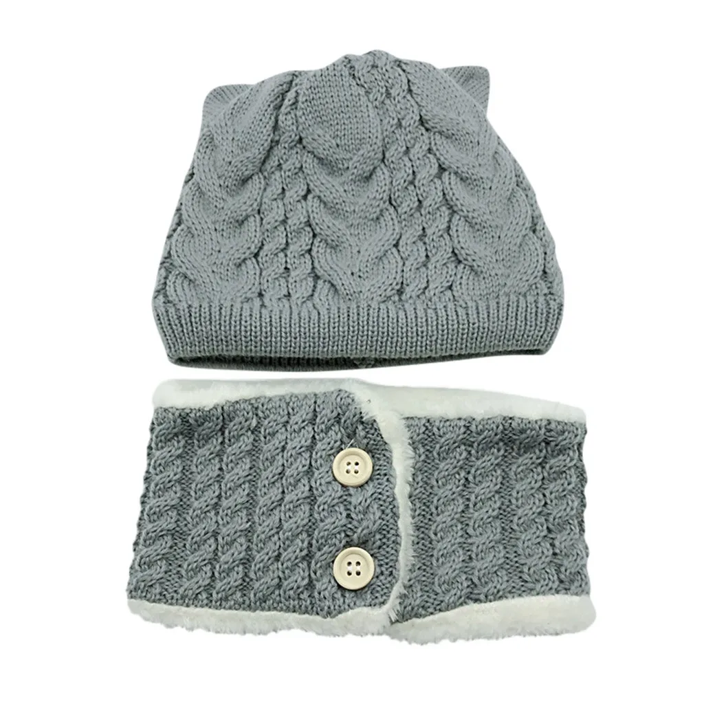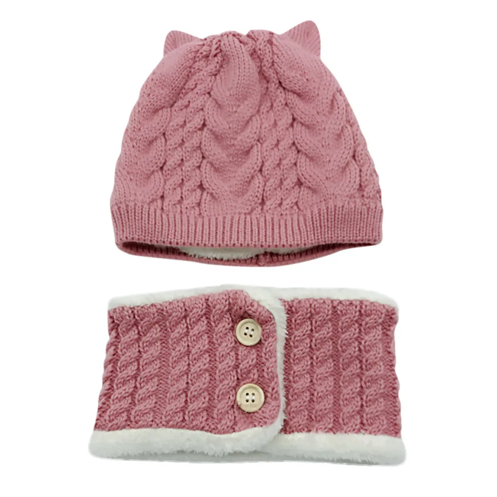Toddler Kids Baby Boy Girl Warm Thick Fleece Knit Crochet Hat Beanie Cap Scarf